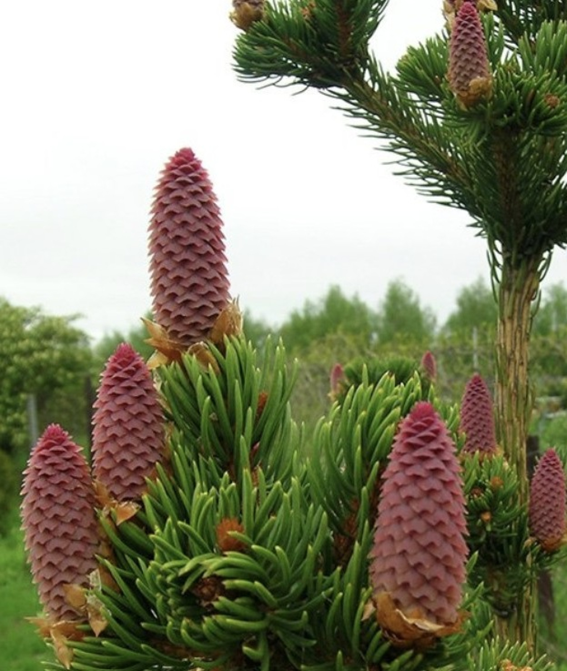 Az ezüstfenyő igen ritka és különleges fajtája! Legfeljebb 100-120 cm magasra növekszik, így kisebb, szűkebb helyekre is jól beilleszthető. Legfőbb érdekessége, hogy már fiatalon sok tobozt hoz, melyek a fejlődés kezdeti szakaszában hosszú ideig nagyon látványos, barnáspiros színűek! Ez a szín a későbbiekben vörösesbarnára változik. Lombozata egyébként inkább zöldes, így a fiatal tobozok piros színe még jobban érvényesül! Igazi kuriózum!