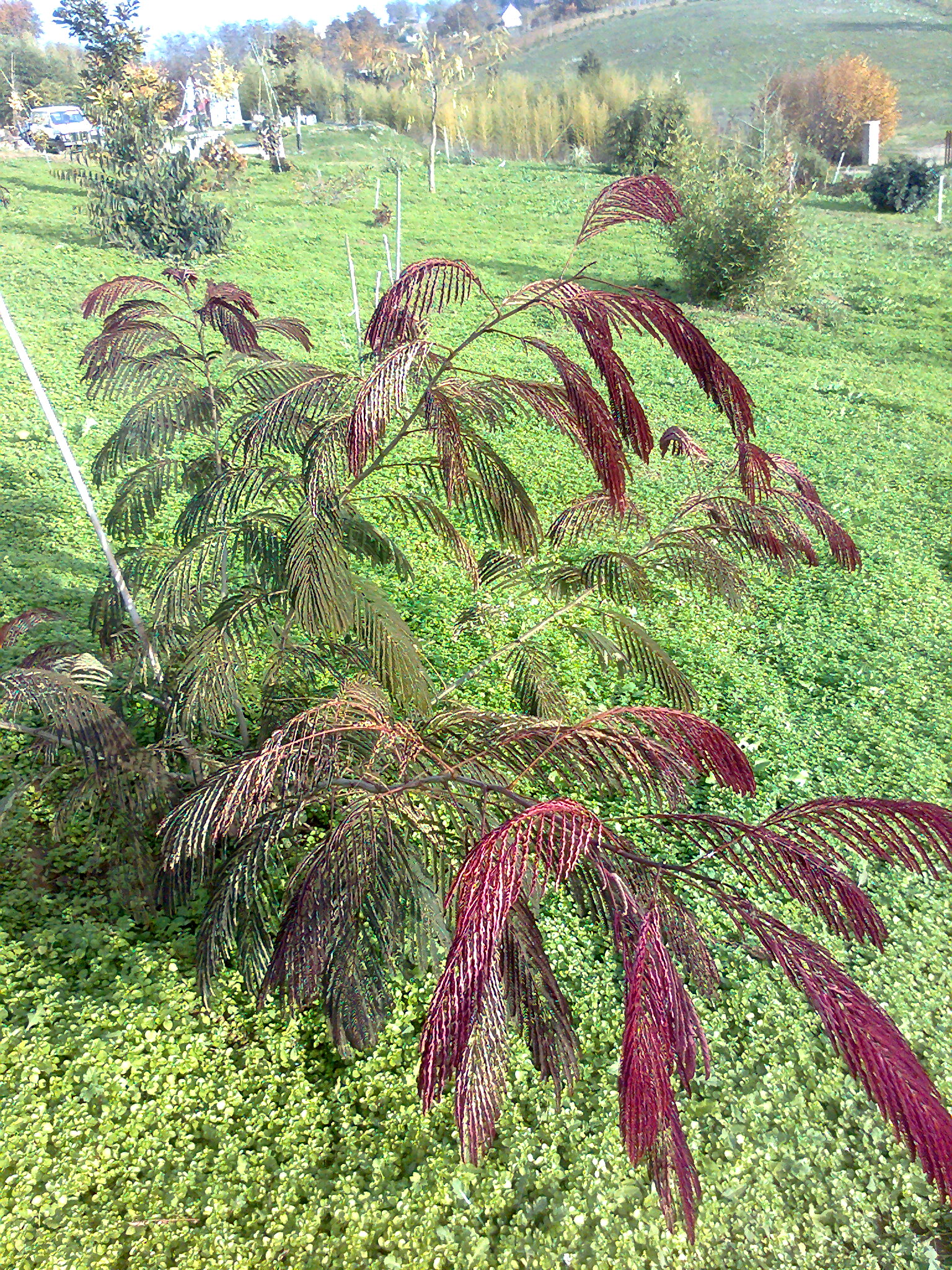 Albizia julibrissin 'Evi's Purple', Pirosasbordó levelű selyemakác