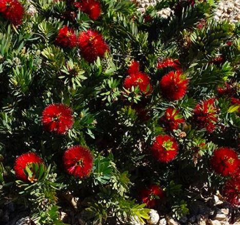 Az ausztrál kefevirág kb 1 méter magasra és 0,6-1 méter szélesre növő változata, mely általában a nyár első felében hozza csodálatos tűzpiros virágzatait, de a nyílás még ezután is, több hétig elhúzódhat. Mínusz 5-6 fokot elvisel, dézsás növényként tartsuk. Minden terasz gyönyörű dísze!