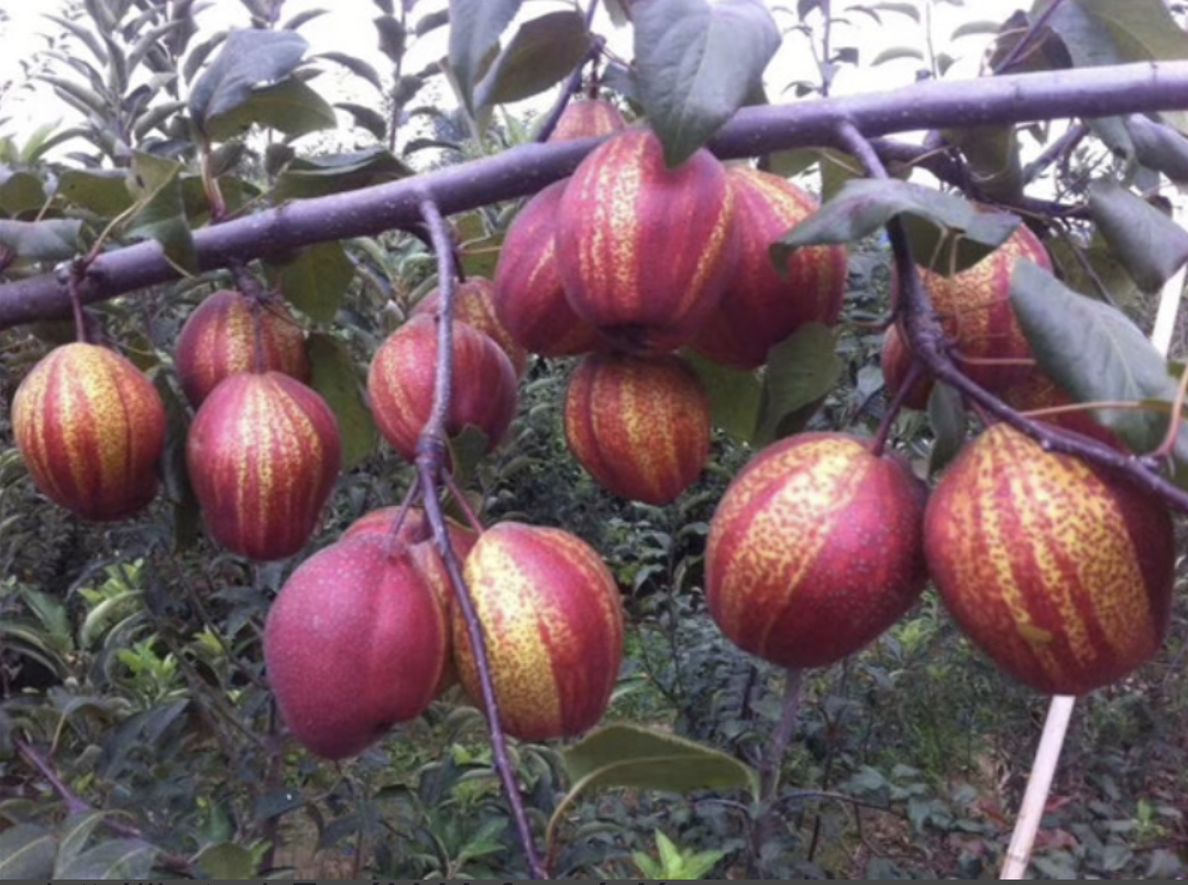 Különleges kínai fajta, melynek sötétpiros termése sárgával csíkozott. A gyümölcsök zamatosak, ropogós húsúak, akár 350 gramm tömegűek is lehetnek, szeptembertől szedhetők. Erős növekedésű, kiváló betegségellenállóságú, bőven termő változat. Csak nálunk kapható különlegesség!