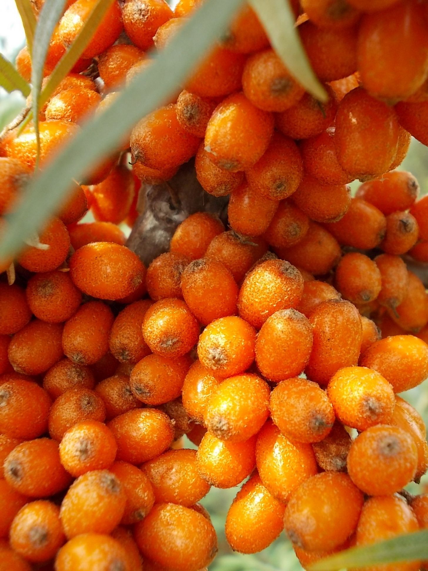 Egyik kollégánk rendkívül egyszerű eszközt szerkesztett a szedéséhez: Egy vékonyabb deszka egyik végén átütött pár vékonyabb szöget, s az így keletkezett "fésű"-vel egyszerűen lefésülte a bogyókat! Ezután a gyümölcsmixerrel kissé megpépesített anyagot gesztenyepüré-nyomón átpréseltük. Nagyon gyorsan lett sok-sok homoktövis-levünk, és a fésüléses módszernek köszönhetően a bokrok ágait sem kellett levagdalni