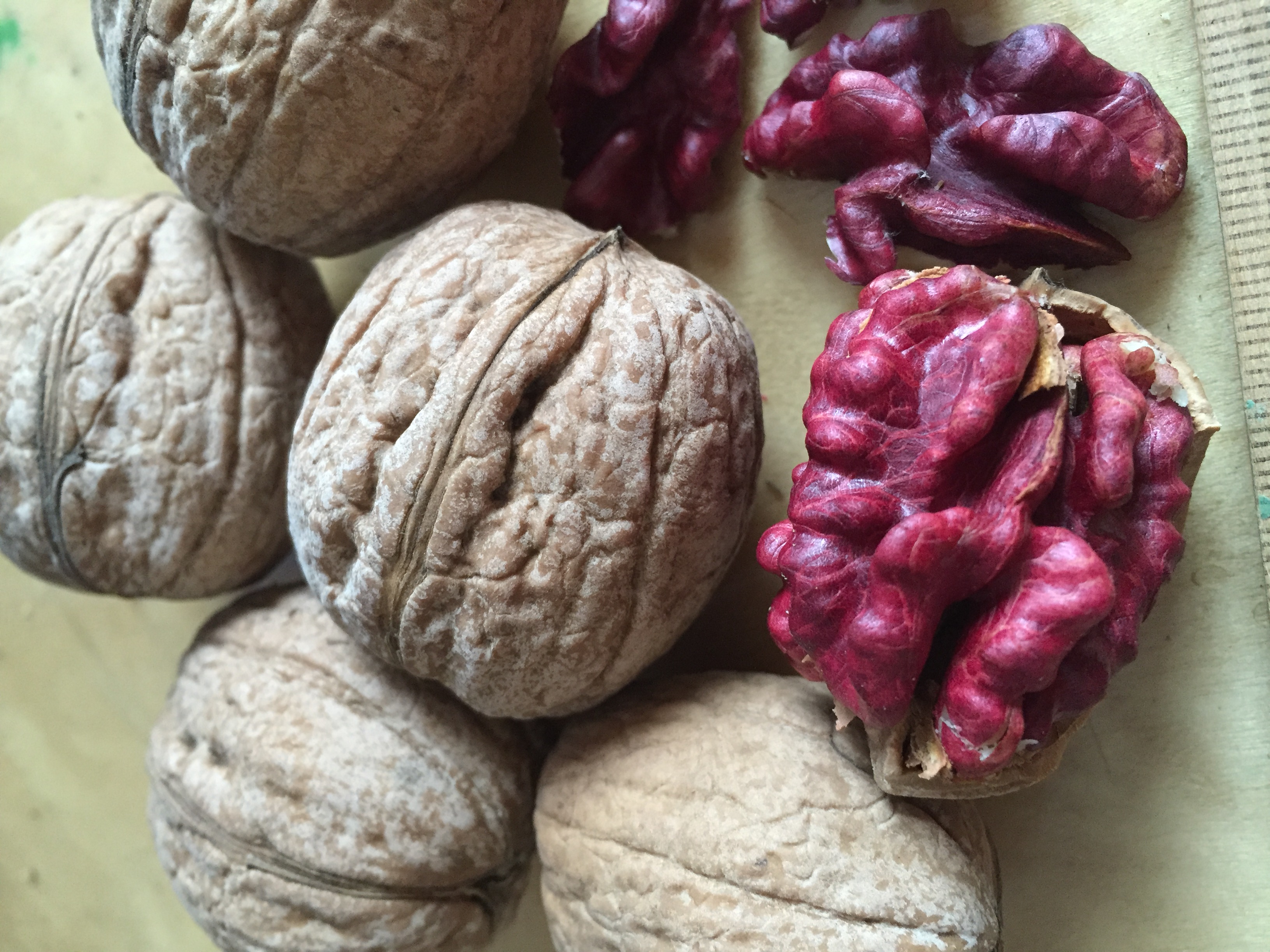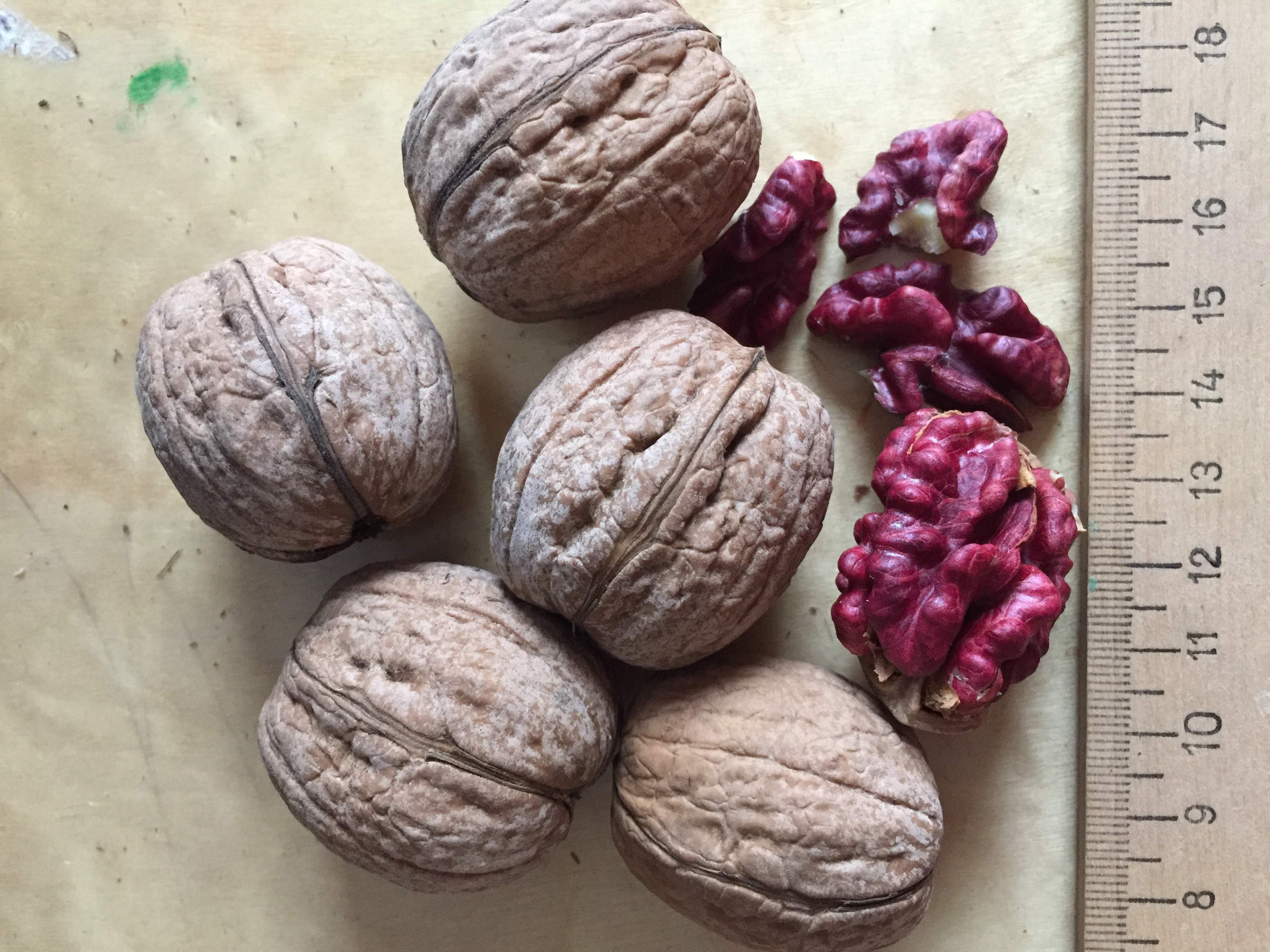 A legszebb a pirosbélű diók (vérdiók) közt, amit valaha láttunk, ráadásul az íze is nagyon jó, a termés nagyon szép gömbölyű, a lilásbordó színű bél teljesen kitölti a héjat. Szeptemberben érik, növekedési erélye átlagos. Buzsákon, Kustos Irma által begyűjtött fajta.
