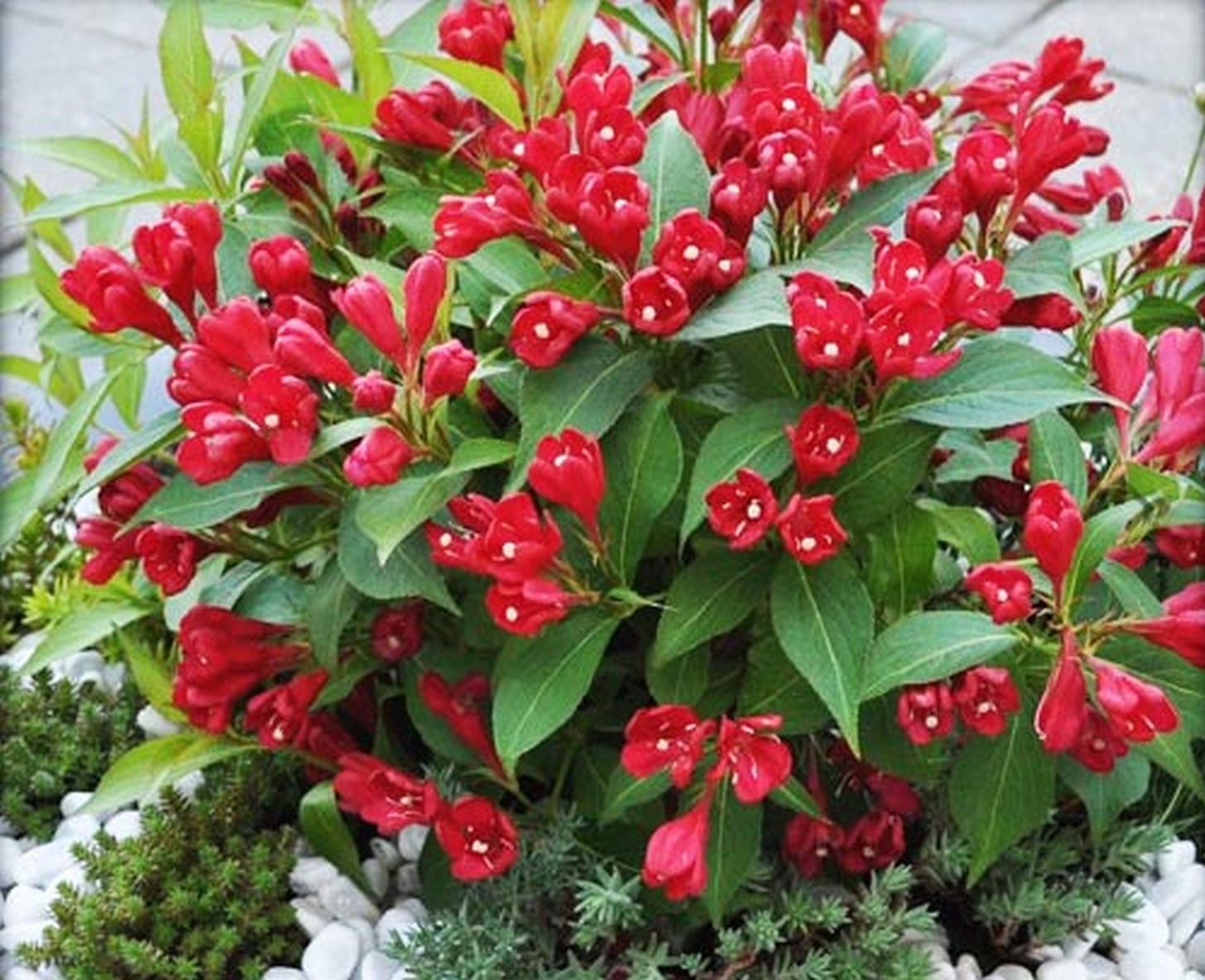 A többé-kevésbé folytonnyíló, illetve másodvirágzó rózsaloncok után végre itt egy igazán erőteljesen és egész nyáron át virágzó újdonság! Májustól a nyár végéig szakadatlanul hozza élénkpiros trombitácskáinak tömegét! Az elnyílott virágok eltávolítása még dúsabb virágzásra ösztönzi! Holland nemesítésű díszcserje, mely 1,5 méteres magasságával sövénynek és szoliternek egyaránt feltűnő!