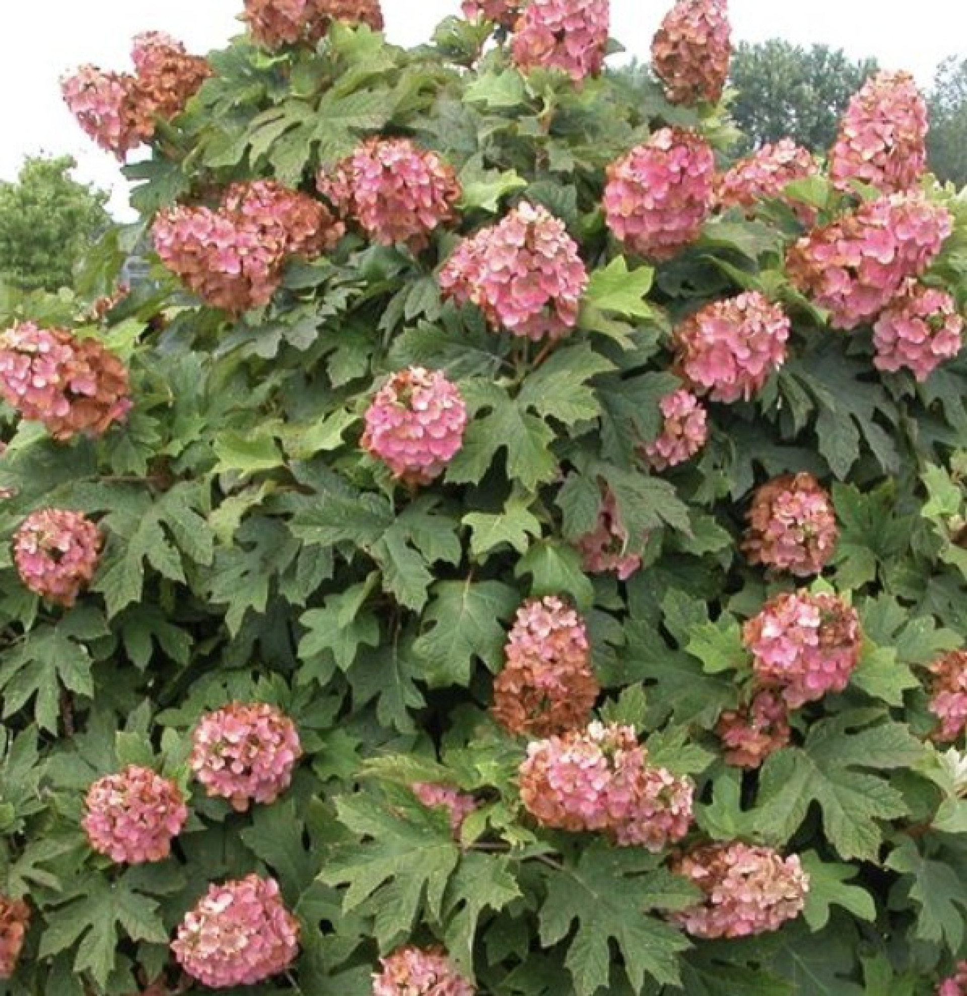 150 cm körüli méretet elérő díszcserje, melynek bugás-fürtös virágzatai a nyár elején hófehéren nyílnak ki, majd az idő előrehaladtával rózsaszínes, a nyár vége felé pedig már szinte bordó színben pompáznak! Különleges alakú levelei tavasszal élénkzölddel hajtanak ki, ősszel pedig látványos bronzvörösre színeződnek! A tölgylevelű hortenziák sokkal edzettebb növények, mint a hagyományosan ismert hortenziák: talajban nem válogatnak és a 2-3 évesnél idősebb példányok a szárazabb időszakokat is jobban átvészelik! Mindemellett nyilván sokkal szebben fognak teljesíteni, ha az aszályos időszakokban heti 1, vagy inkább 2 alkalommal egy-egy jó nagy vödör vízzel gondoskodunk róluk! A tölgylevelű hortenziák további érdekessége, hogy nagyon enyhe teleken lombozatukat megtartják, szinte örökzöldként viselkednek.