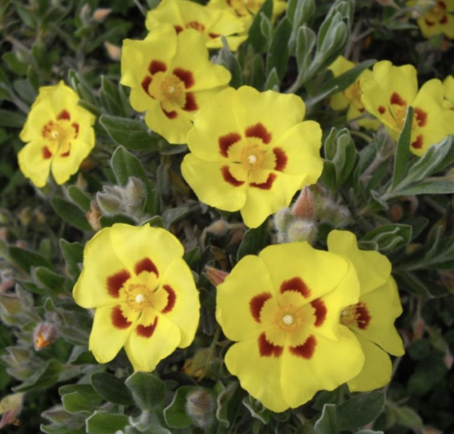 Az Ibériai félszigeten honos, kifejezetten szárazságtűrő, örökzöld cserje, mely közel 1 méteres magasságot, illetve 2 méteres szélességet érhet el. Közepükön barnás foltokkal ékesített aranysárga virágai május-júniusban nyílnak, időnként olyan tömegben, hogy az egyébként ezüstszürke lombozat nem is látszik! Teljes nyílásban lélegzetelállítóan szép! Különösen jól mutat az azonos időben nyíló, égszínkék virágú Ceanothusok társaságában! Meleg, tűző napos, szárazabb kertek ideális ékessége, de dézsásként is tarthatjuk.
