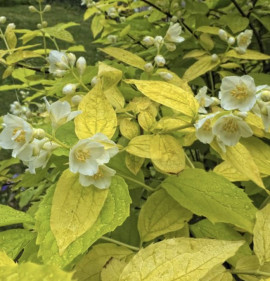 Május-júniusban tömegesen nyíló dekoratív, nagy, hófehér virágai igen kellemes illatúak. Talajban nem válogatós, szárazságtűrő, napfénykedvelő növény, szoliternek és sövénynek is kiválóan alkalmas! Az alapfajhoz képest valamivel kisebbre, mintegy 2 méteresre terebélyesedik.