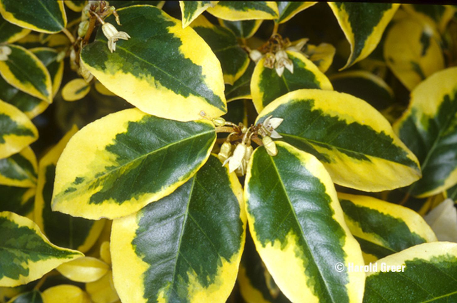 Sűrű lombozatú, edzett, örökzöld cserje, melynek levelei fiatal korában ezüstösen csillogóak, később kiszélesedők, mutatós aranysárga szegélyűek. Fényes levelei elrejtik télen (novembertől) nyíló, pici, fehér,illatos virágait, melyek rovarok számára különösen vonzóak. Kiválóan alkalmas edzett, szárazság- és hőségtűrő, örökzöld sövénynek! Szűkebb helyeken rendszeres nyírással (évente 1-2 alkalom) tarthatjuk meg a kívánt méretben.