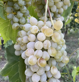 Szeptember elején érő, nagyon nagy fürtű, nagy, sárgás bogyójú, ízletes csemegeszőlő. Rezisztens!