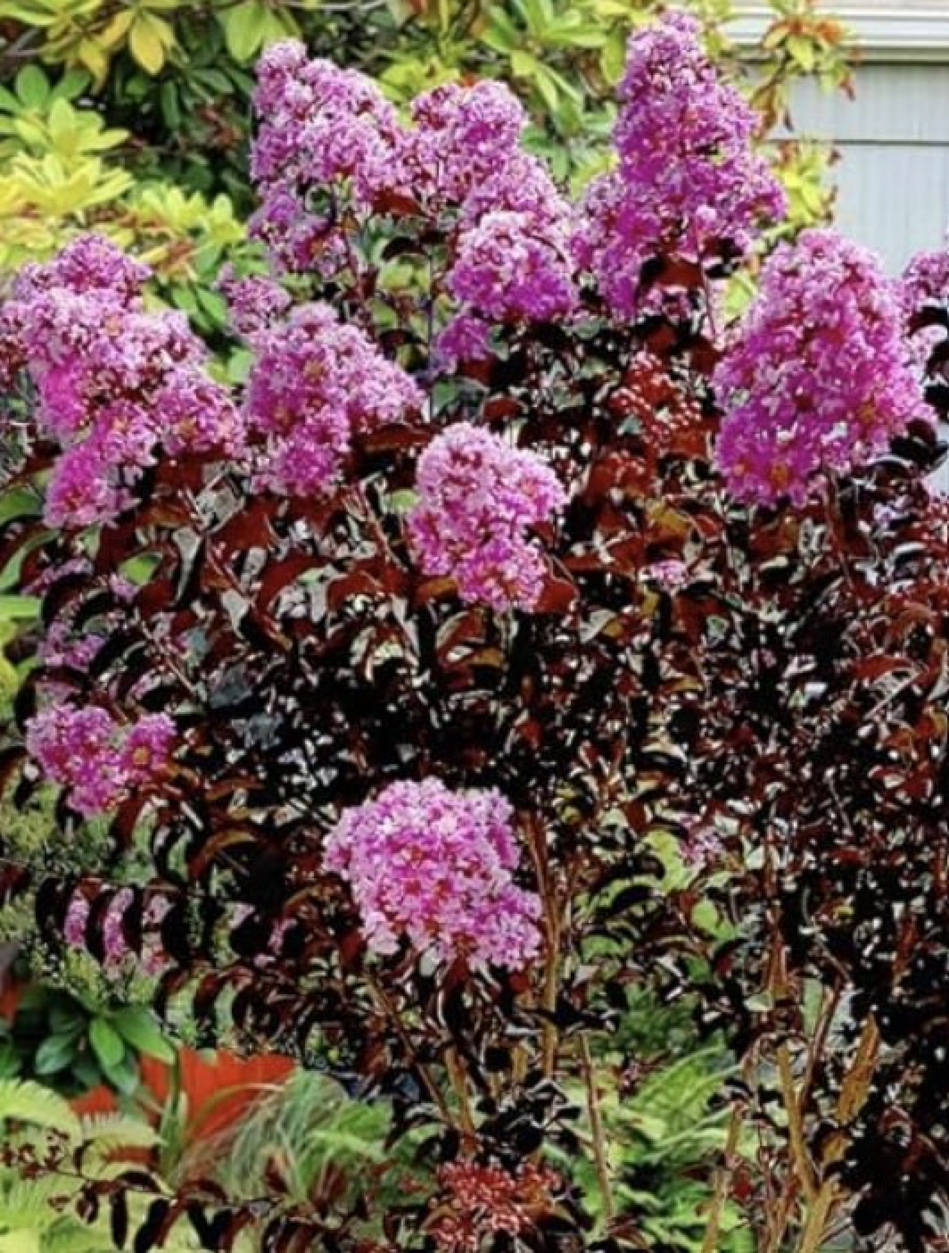 Mintegy 300 cm magasságot elérő, nagyobb bokorrá, vagy némi alakítással egy-, vagy több törzsű kis fává nevelhető, rendkívül látványos megjelenésű fajta! Sötétbordó lombozatát júliustól akár októberig is koronázhatják gyönyörű, élénkrózsaszínű virágbugái! A selyemmirtuszok a nyár második felének egyértelműen legdekoratívabb, figyelemfelkeltő szépségű fás növényei!