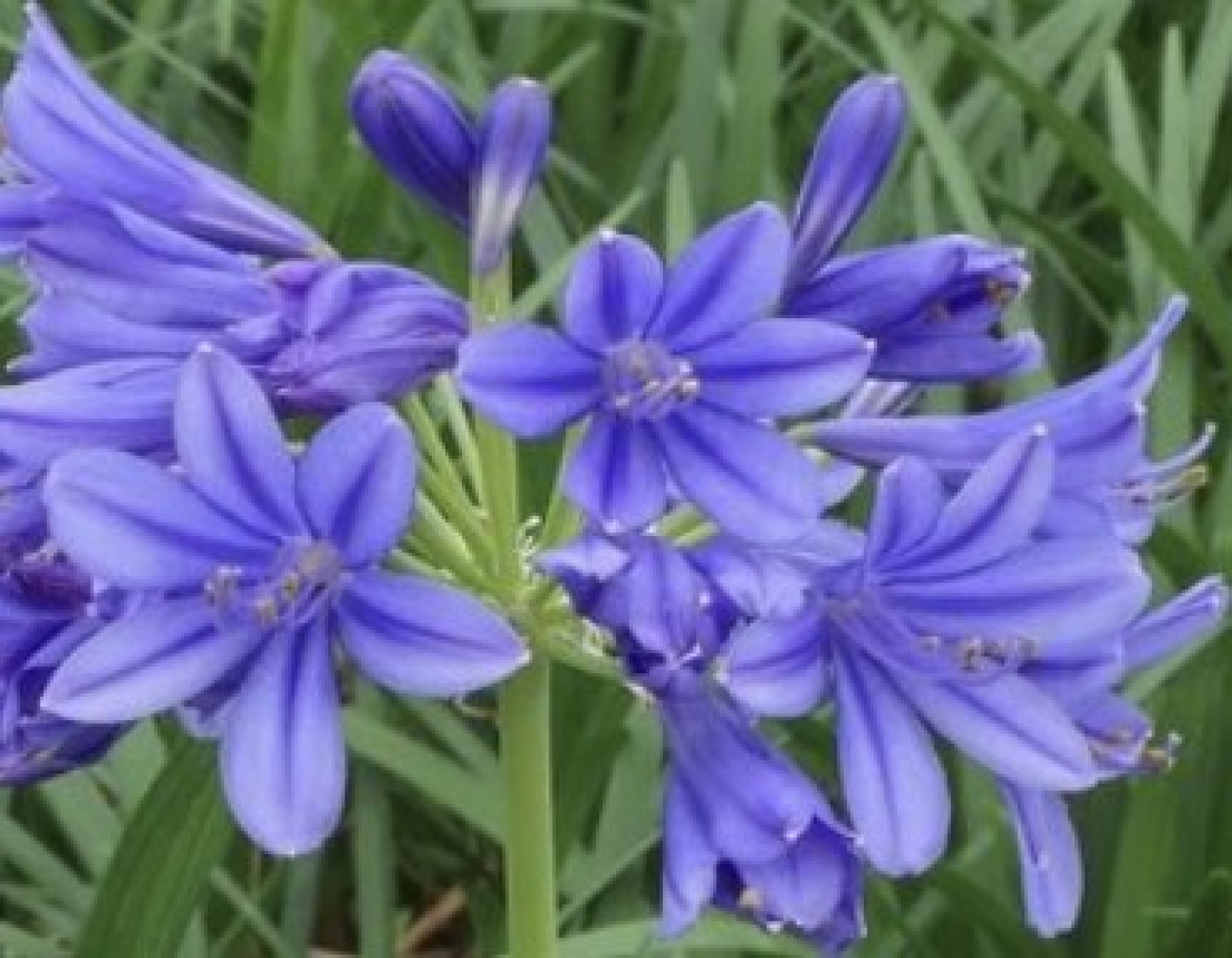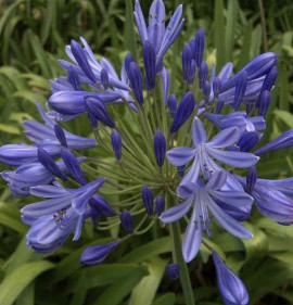 Afrikából származó, nagyon dekoratív, örökzöld évelő, mely nyáron 40-60 cm magas szárakon hozza világoskék virággömbjeit! Fagymentesen teleltetendő, ha edényben tartjuk, de védett, melegebb fekvésben, némi takarással, a szabadban is kitelel. Az egyik leghálásabban díszítő dézsás növény!