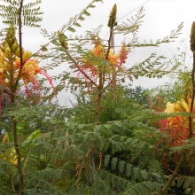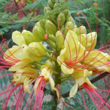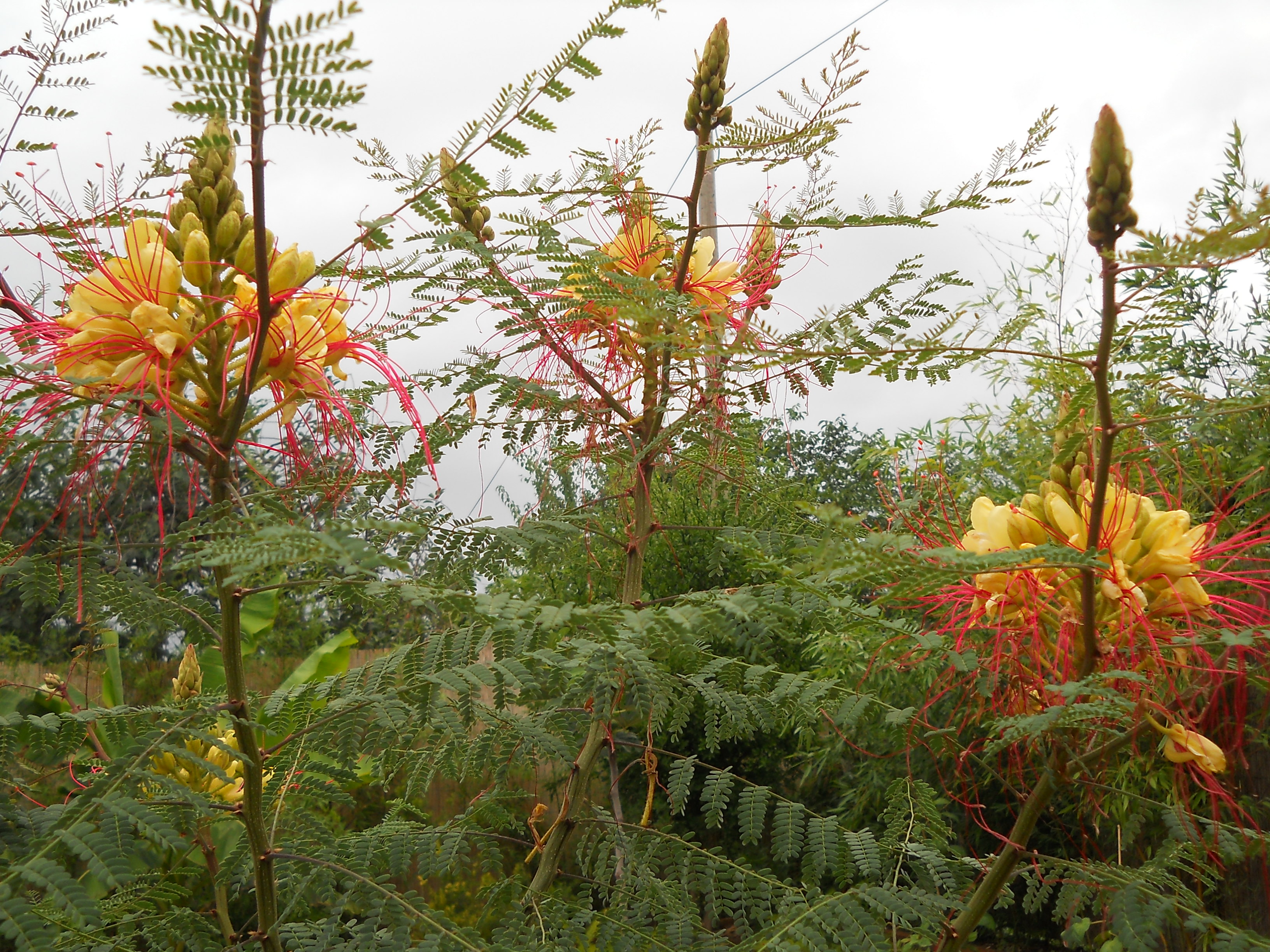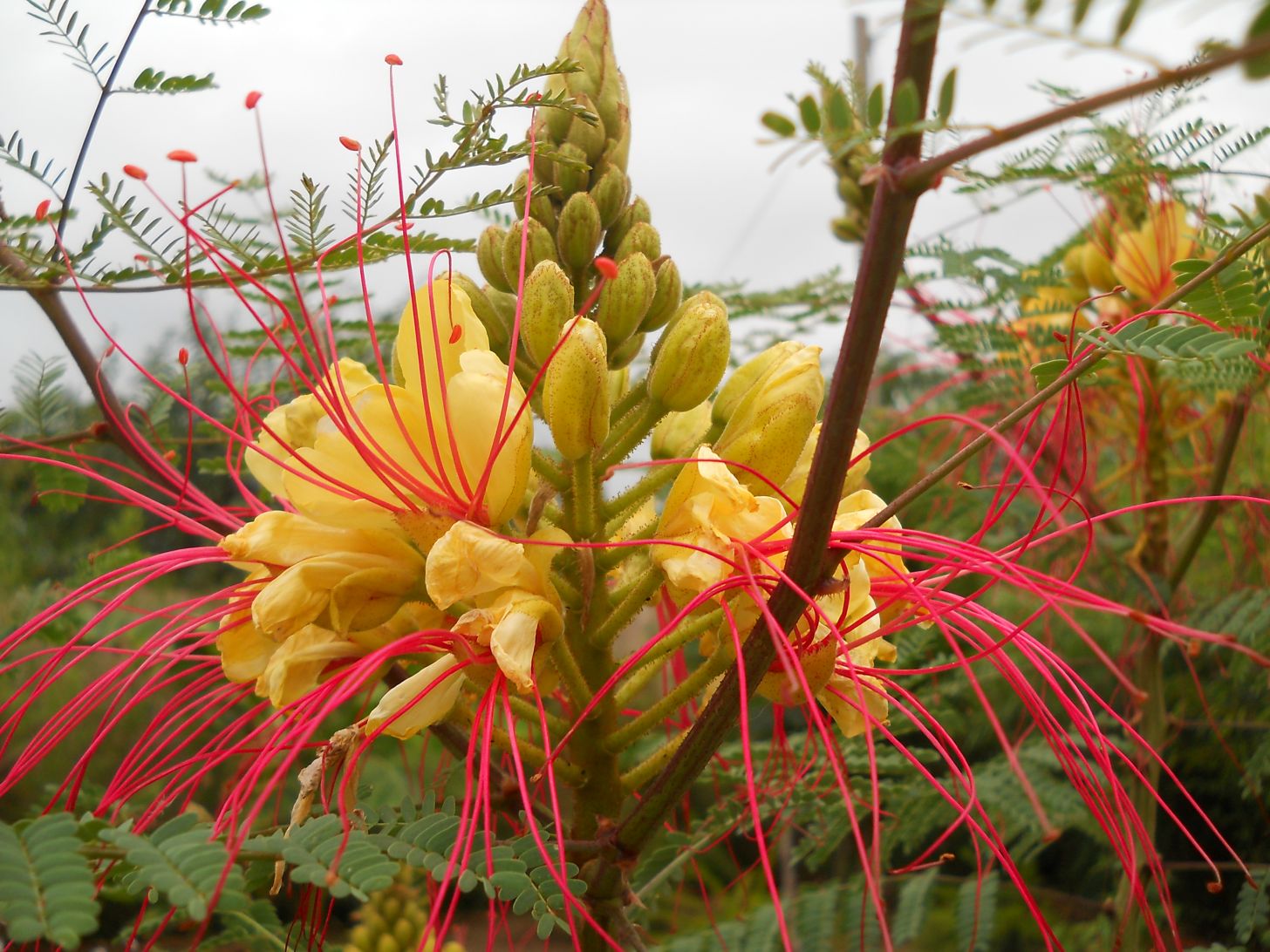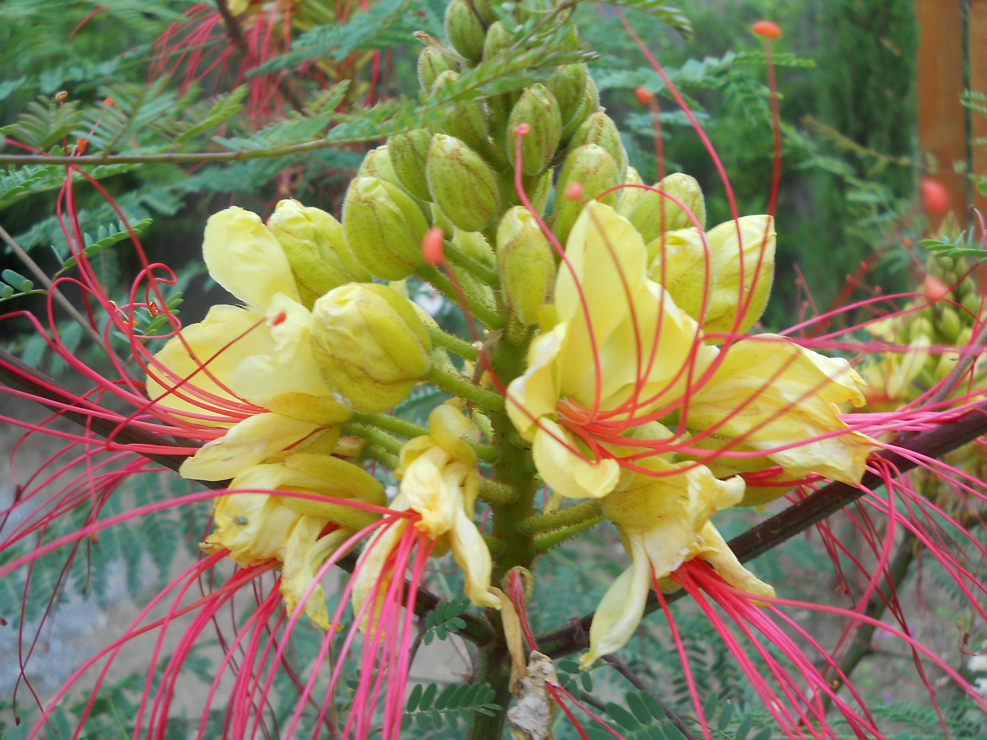 Argentína és Uruguay az őshazája, de mára az egész meleg-mérsékelt öv egyik legnépszerűbb dísznövénye. Laza ágú, lombhullató cserje, vagy kisebb fa. Finom tagoltságú, összetett levelei vannak. Rendkívül egzotikus megjelenésű, piros porzójú, sárga virágai nyár végén nyílnak. Pécsett, és Siklós mellet is sok éve szabadban telelő, minden évben dúsan virágzó, gyönyörű, fejlett példányai vannak!