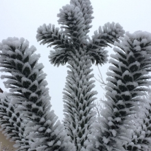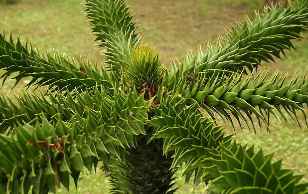 Igen mutatós, különleges megjelenésű fenyő, tojásdad alakú, széles, sötétzöld levelei kemények, szúrósak. Csak érdekességképpen említjük, hogy nagy méretű, ehető és ízletes magjait őshazájában előszeretettel fogyasztják, sőt (sajnos) állatok takarmányozására is használják!
