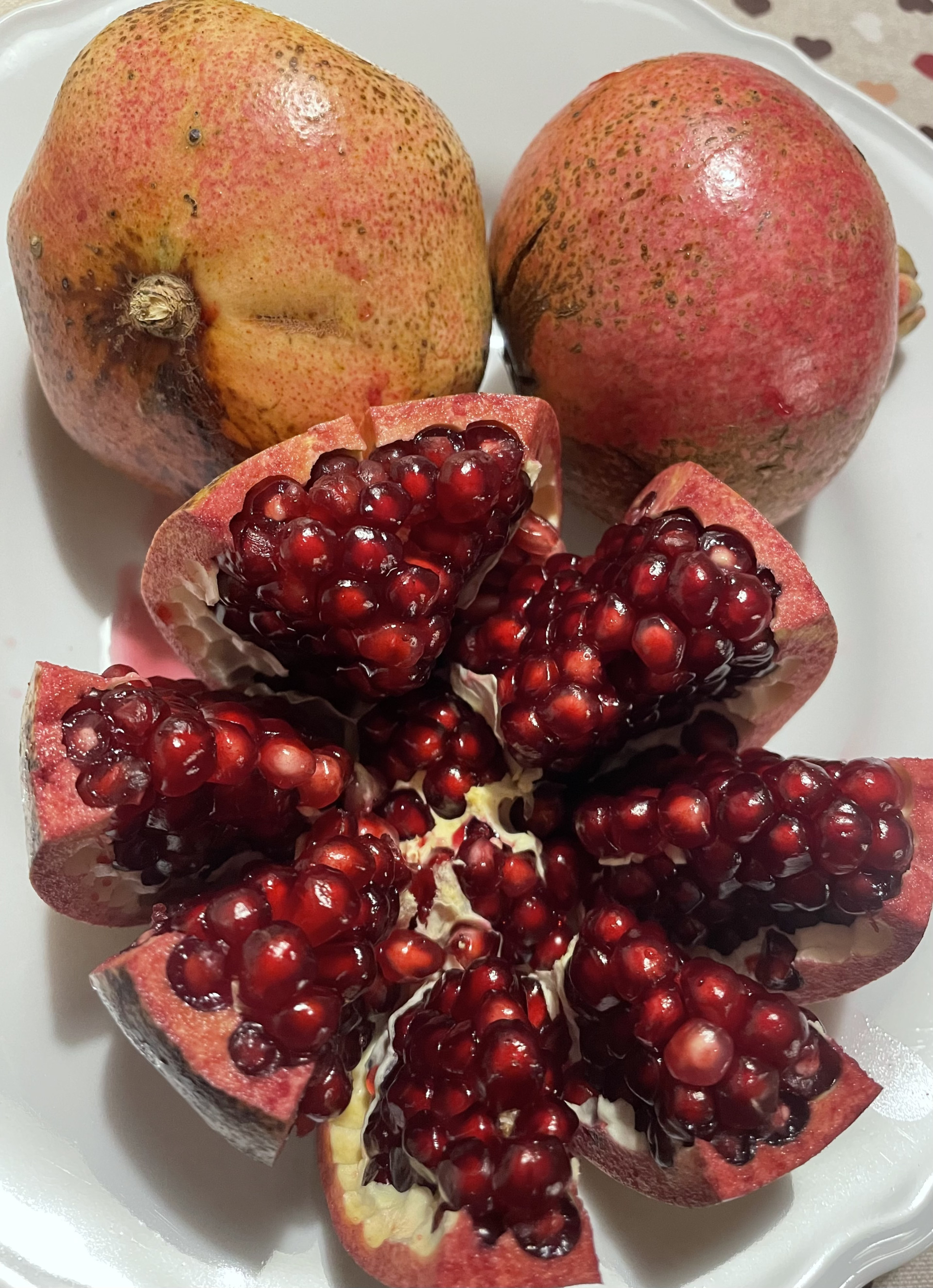 Olasz eredetű gránátalma, mely október végén érik. Ikrái tűzpirosak, nagyok, ízük kellemesen édes, savszegény, minimális fanyarsággal! Az egyáltalán nem különleges, átlagos adottságú egerági kertünkben is szépen terem, a képek 2024-ben termett gyümölcsökről készültek.