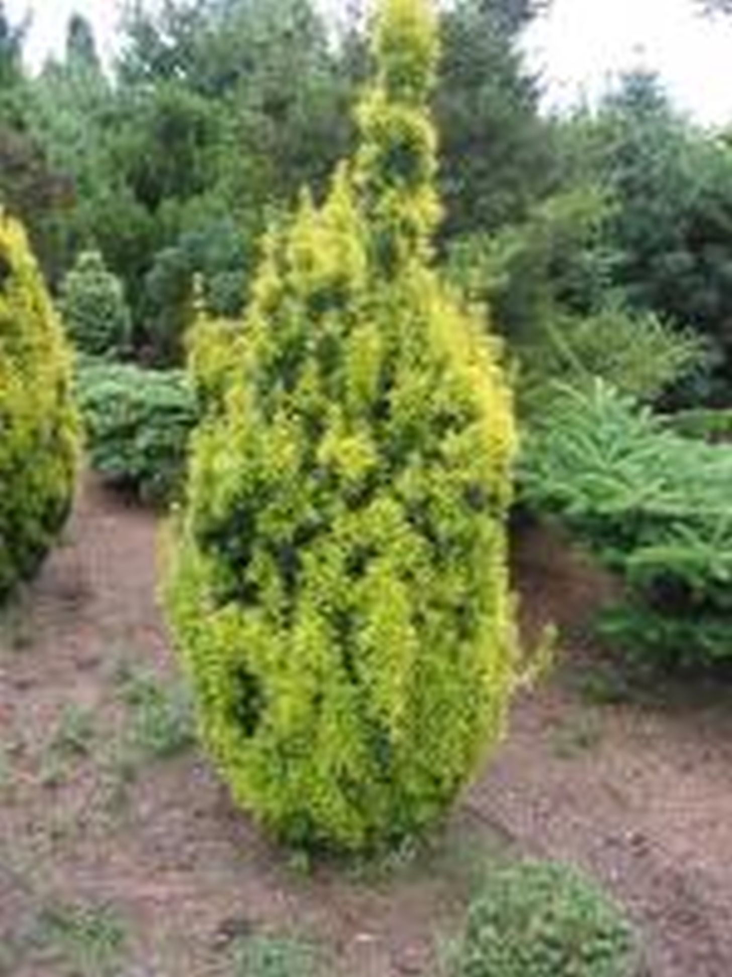 Kisebb termetű, oszlopos alakú tiszafa, melynek halványzöld levelei széles aranysárga sávval szegélyezettek, így az egész növény sárgának látszik.