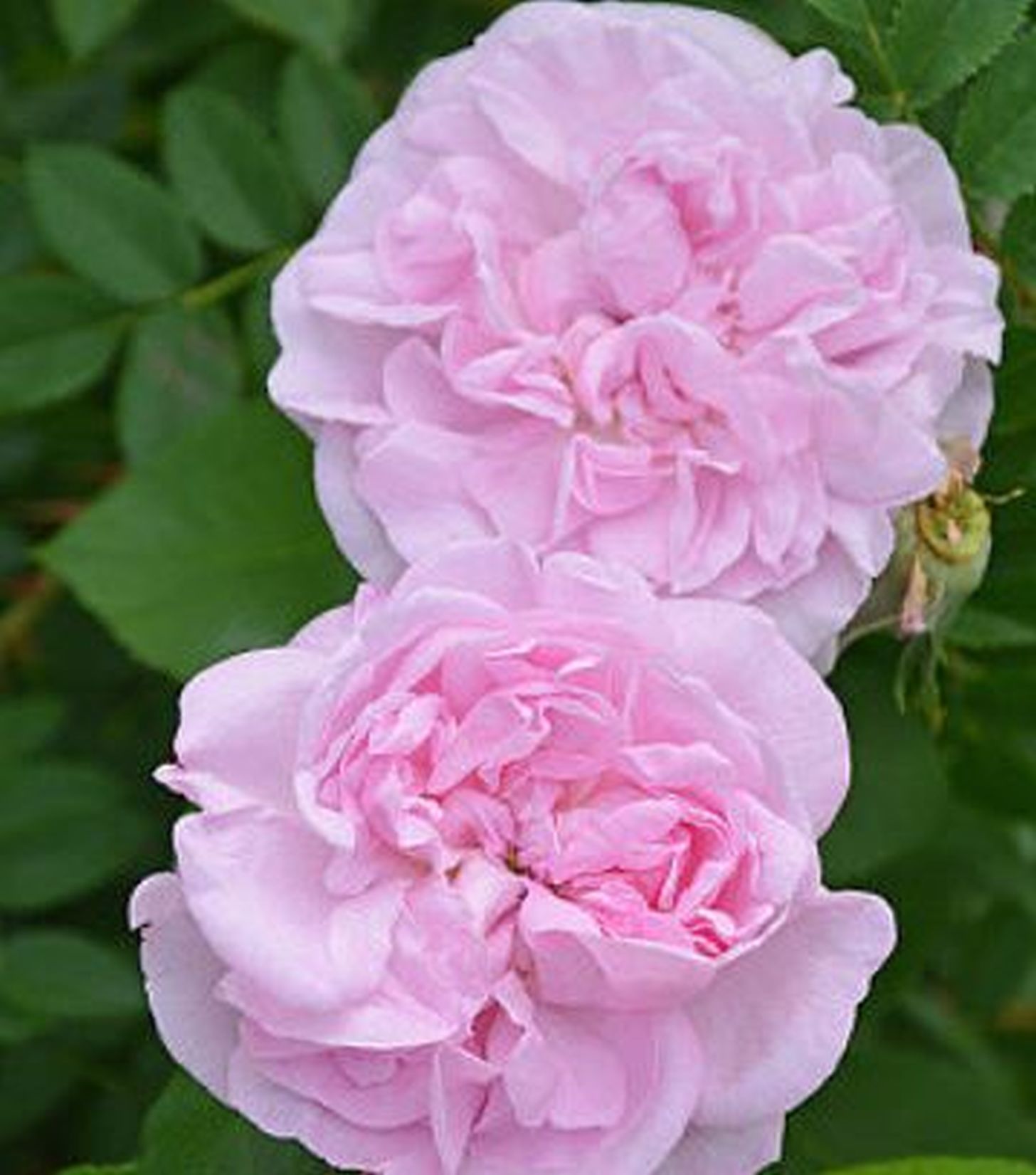 Másfél méteres bokorrá növő, a nyár első felében nyíló, gyönyörű, tömvetelt rózsaszín virágú rózsa.