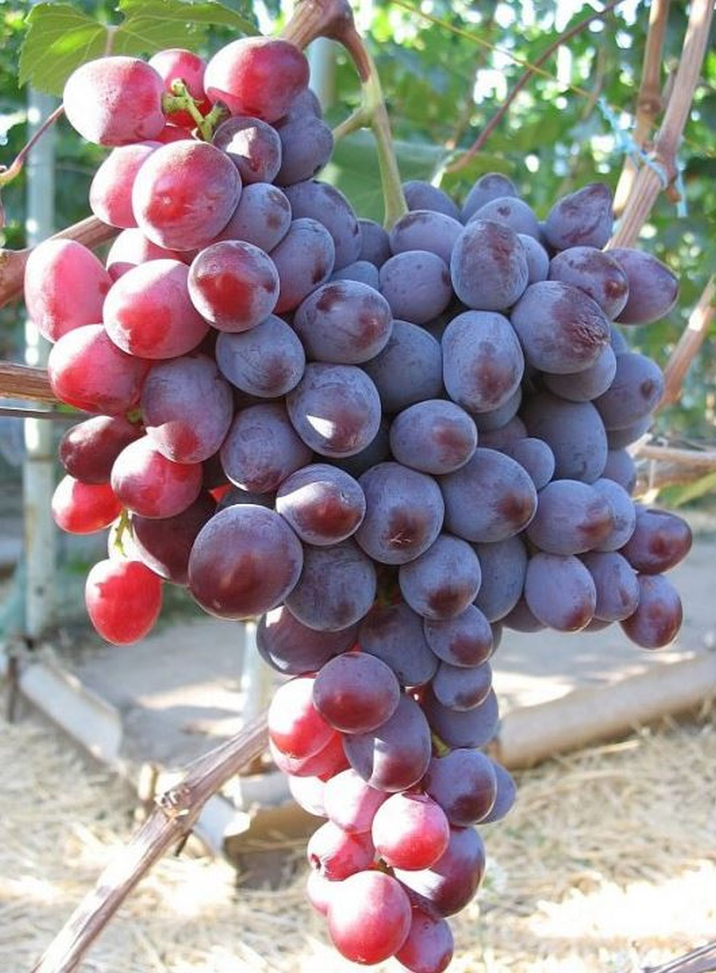 Korai érésű, már augusztus elejétől szedhető, ukrán nemesítésű, gyönyörű minőséget adó, kék csemegeszőlő újdonság! Kissé ovális, gömbölyded, nagy bogyói pirosaslila színűek, édes-harmonikus zamatúak, átlagosan 600 gramm tömegű fürtöket alkotnak. Betegségekkel szemben nagyon jó ellenállóságú, mínusz 24 fok fagytűrésű fajta!