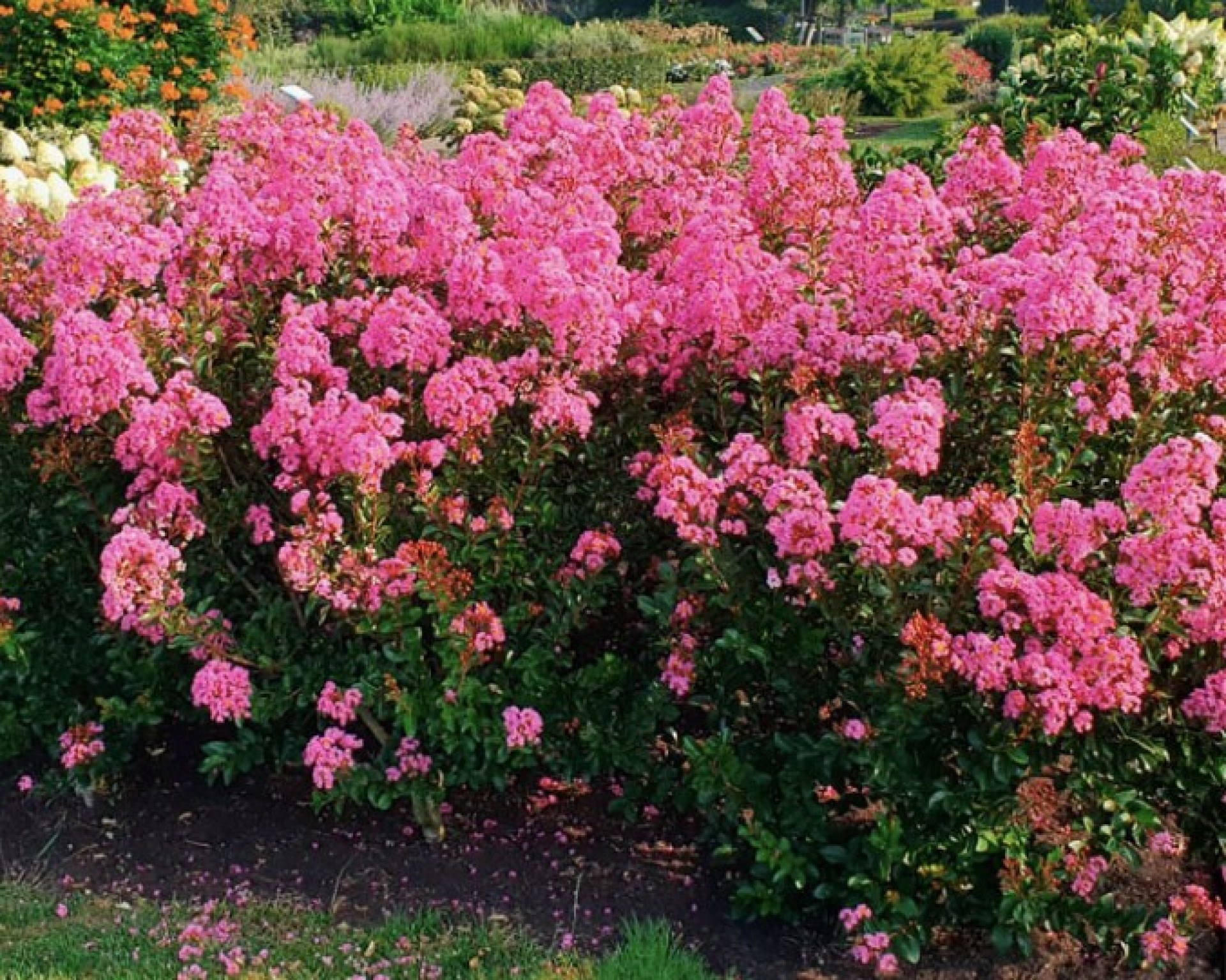 Rendkívül dús virágzású és csak mintegy 2 méter magasra növő selyemmirtusz újdonság, mely sövénynek, szoliternek és dézsásnak is alkalmas! Lilásrózsaszín virágzatai augusztus-szeptemberben, mintegy két hónapon át gyönyörködtetnek!