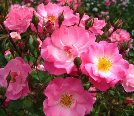 This rose is healthy, bright pink-flowered, short stature, perfectly suitable for covering the ground and blooms continuously throughout the summer!