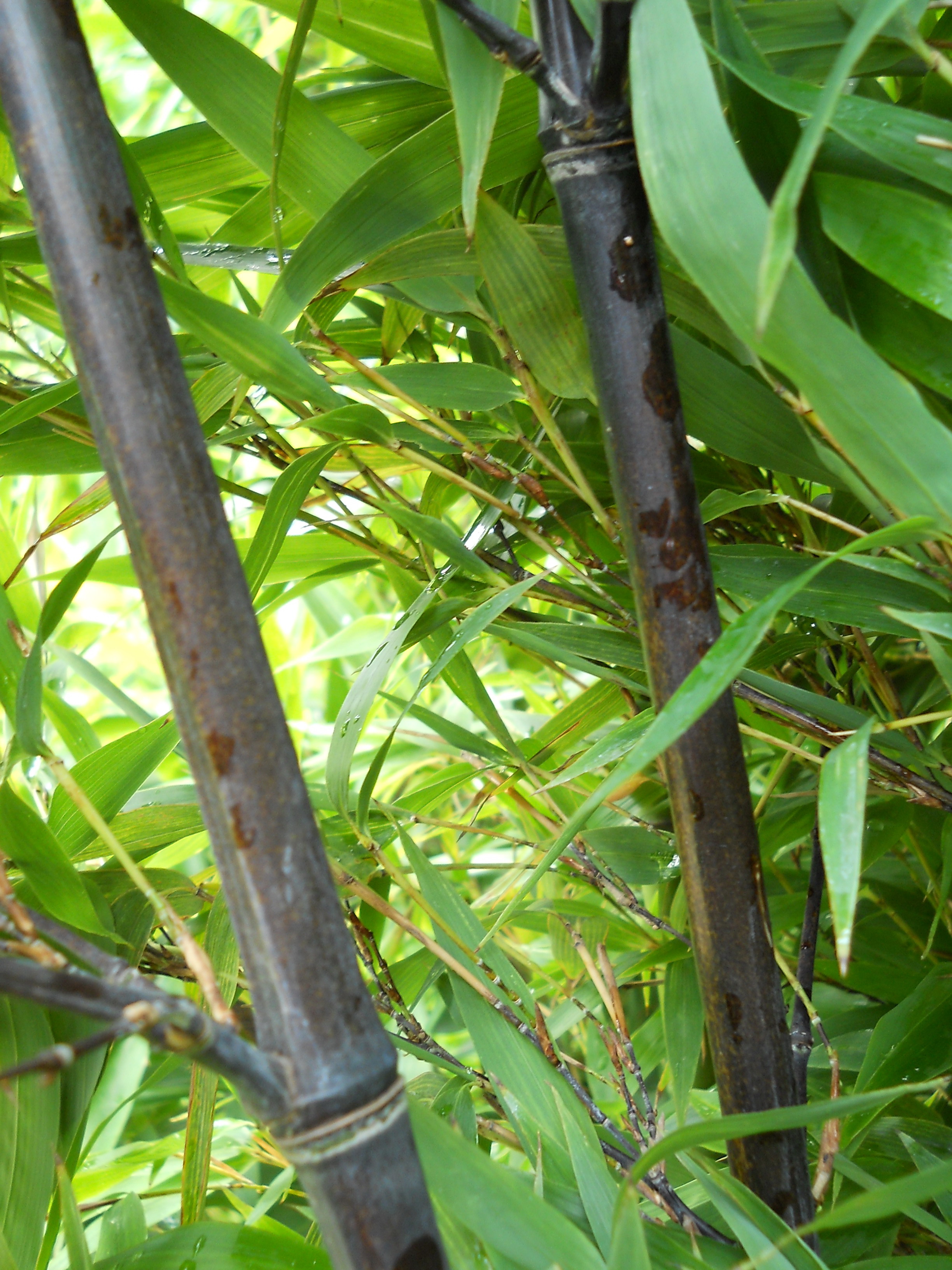 Egyedülálló szárszíne miatt igen keresett növény. Kifejlett korában 6-8 méteres magasságot és 3-5 cm-es szárvastagságot érhet el. A frissen kihajtott szárak erősen hamvasak, sötétzöld színűek, a napfény hatására ősztől sötét pontozottság, illetve foltosodás jelenik meg rajtuk. A második év során a szárak rendkívül látványos, fénylő ébenfekete színt vesznek fel. Rügyei ehetők, erős szára kiváló alapanyag. Sárga szárú bambuszokkal társítva különleges színhatást érhetünk el vele.