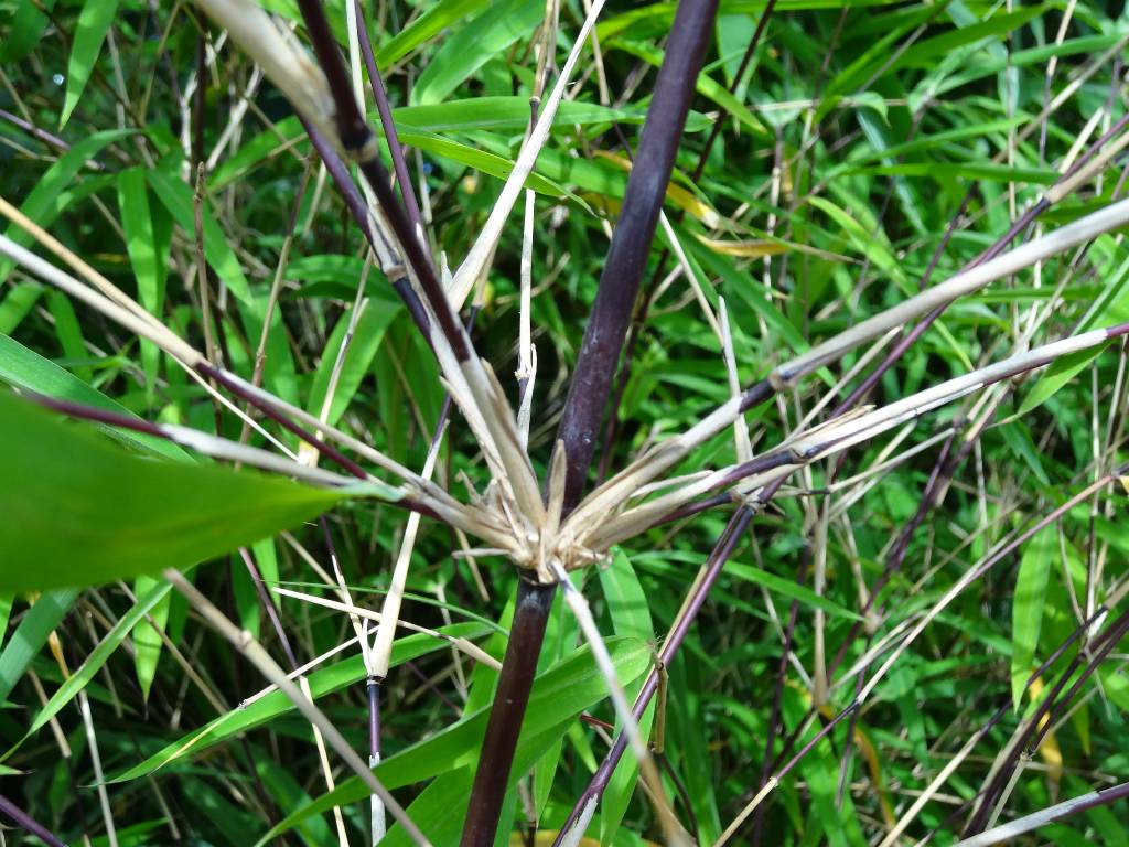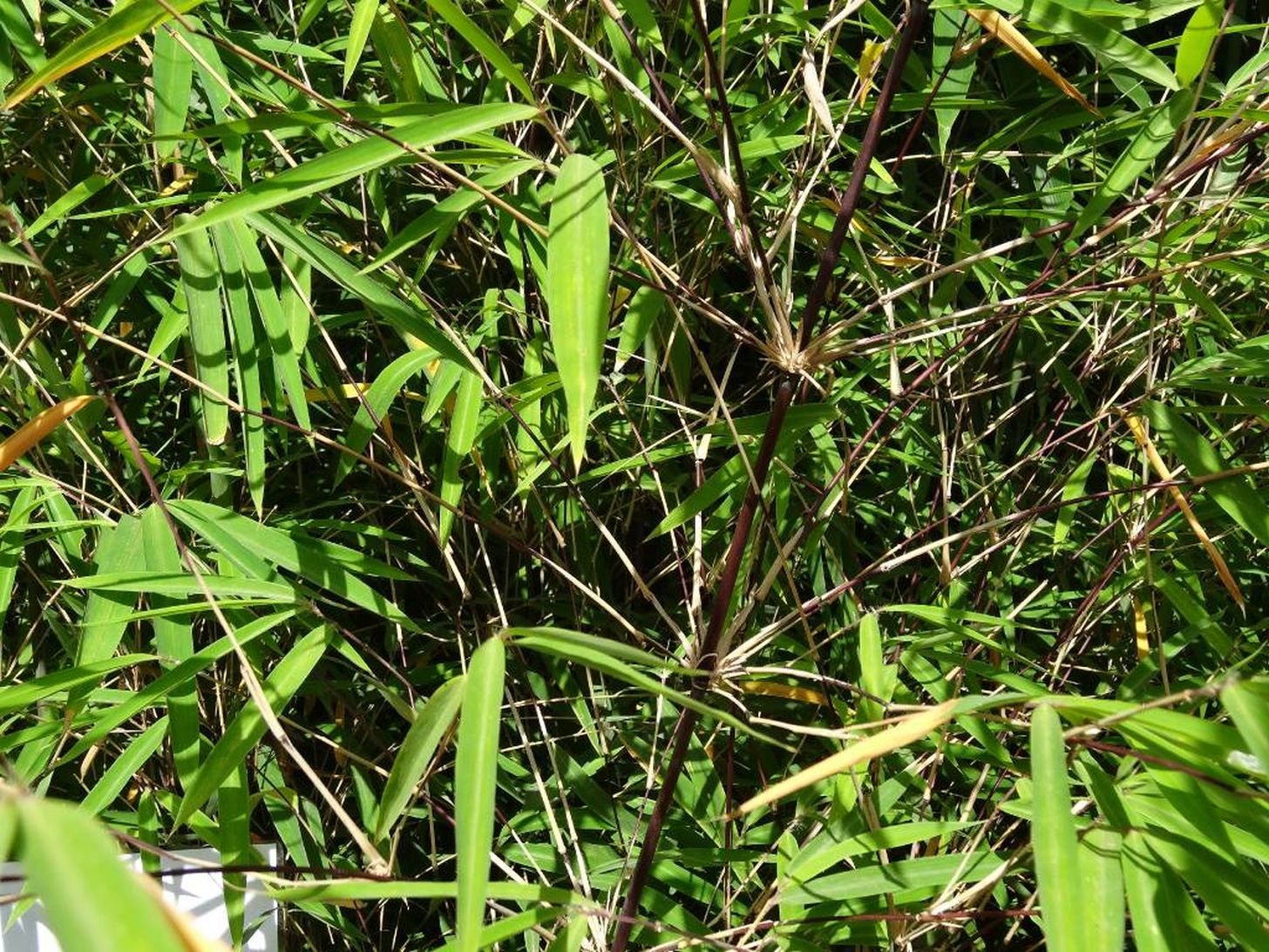 Kína Jünnan tartományában, a Lijiang melleti hegyen 2800 méterig hatoló, nem terjedő tövű bokorbambusz. 2-4 méteres magasságot ér el, a kifejlett szárak 1-2 centi vastagok lehetnek, fekete színűek. A faj érdekessége, hogy a fejlődésben lévő fiatal szárak színe hamvaskék! Kiváló szoliter, illetve sövénynövény, emellett dézsásnak és szobanövénynek is alkalmazható. Teljesen télálló, csak a durvább telek tesznek kárt a lombozatban, de ezt tavasszal hamar kinövi!