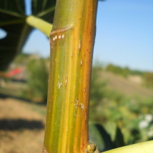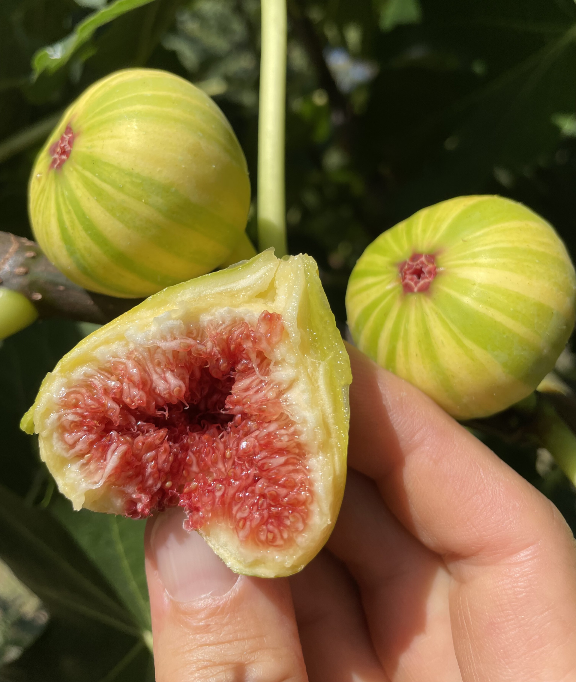 Sárga alapon zölddel csíkozott, piros gyümölcshúsú termései nemcsak igen látványosak, de rendkívül finomak, mézédesek is! Télállósága a többi ismert fügefajtával gyakorlatilag megegyező.