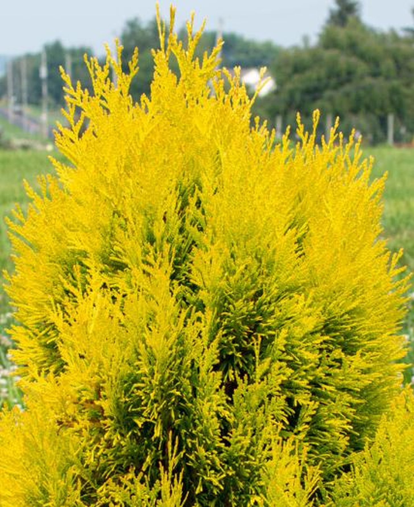 Alapfaja az óriás tuja, de ez a változat legfeljebb csak 3 méter körüli magasságig növekszik. Különös értéke a világító aranysárga lombszín, mely tűző napon sem ég meg! Sötétebb háttérben, kék, zöld, piros lombszínek mellett nagyon kontrasztos, tekintetet vonzó, gyönyörködtető látvány! Sövénynek is nagyon mutatós, bár kissé lassú növekedésű. Edzett, tűrőképes növény!