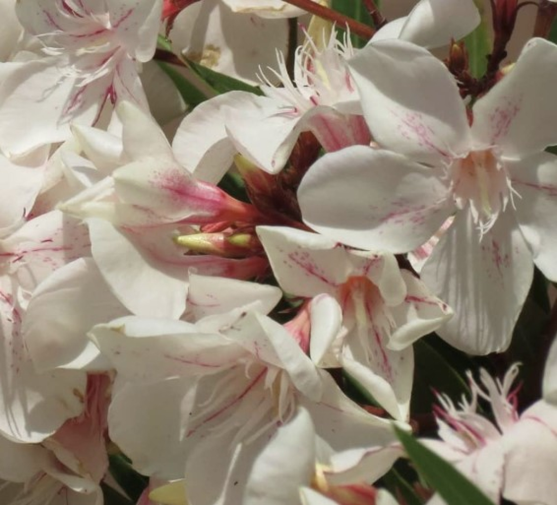 Nagy méretű, mintegy 6 centi átmérőjű, széles szirmú, fehér virágait liláspiros pöttyök és csíkok díszítik, ez adja különleges szépségét. Mintegy 2 méteres magasságú, és kb. mínusz 10 fok fagytűrésű fajta, mely elsősorban edényes tartásra ajánlott, de kedvező mikroklímában természetesen a kertbe is kiültethető. Virágzásának egyes időszakaiban kifejezetten dúsan nyílik!
