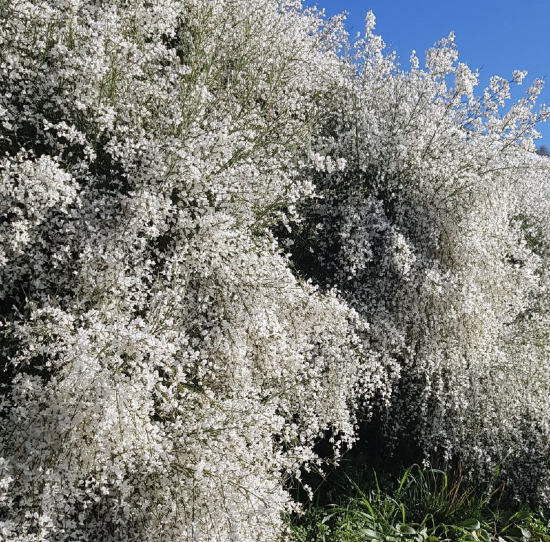 A Földközi-tenger környezetében, Észak-Afrikában és Dél-Európában honos, 3 méter körüli magasságot elérő, gyenge, száraz talajban is jól fejlődő cserje, melynek ágrendszere csak levéltelen zöld vesszőkből áll. Korán, már februárban kezdheti virágzását, mely akár májusig is tarthat. Az édes illatú, hófehér, pillangós virágok hihetetlen tömegben, rendkívül látványosan nyílnak! Kissé védettebb, meleg, napos fekvésekben érzi magát a legjobban. A kissé megnyúlt bokrokat érdemes 1-2 évente erősen visszavágni, így zömökebb formában is megtarthatók és ugyanolyan dúsan fognak virágozni.