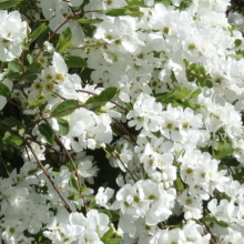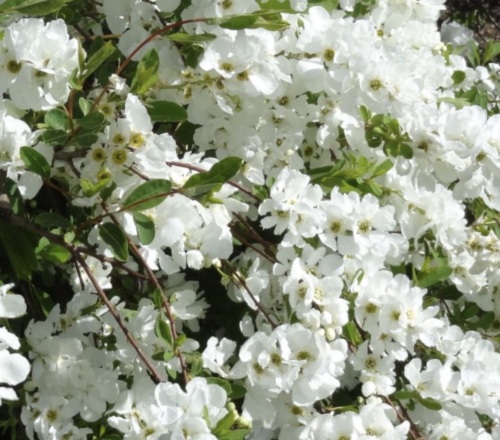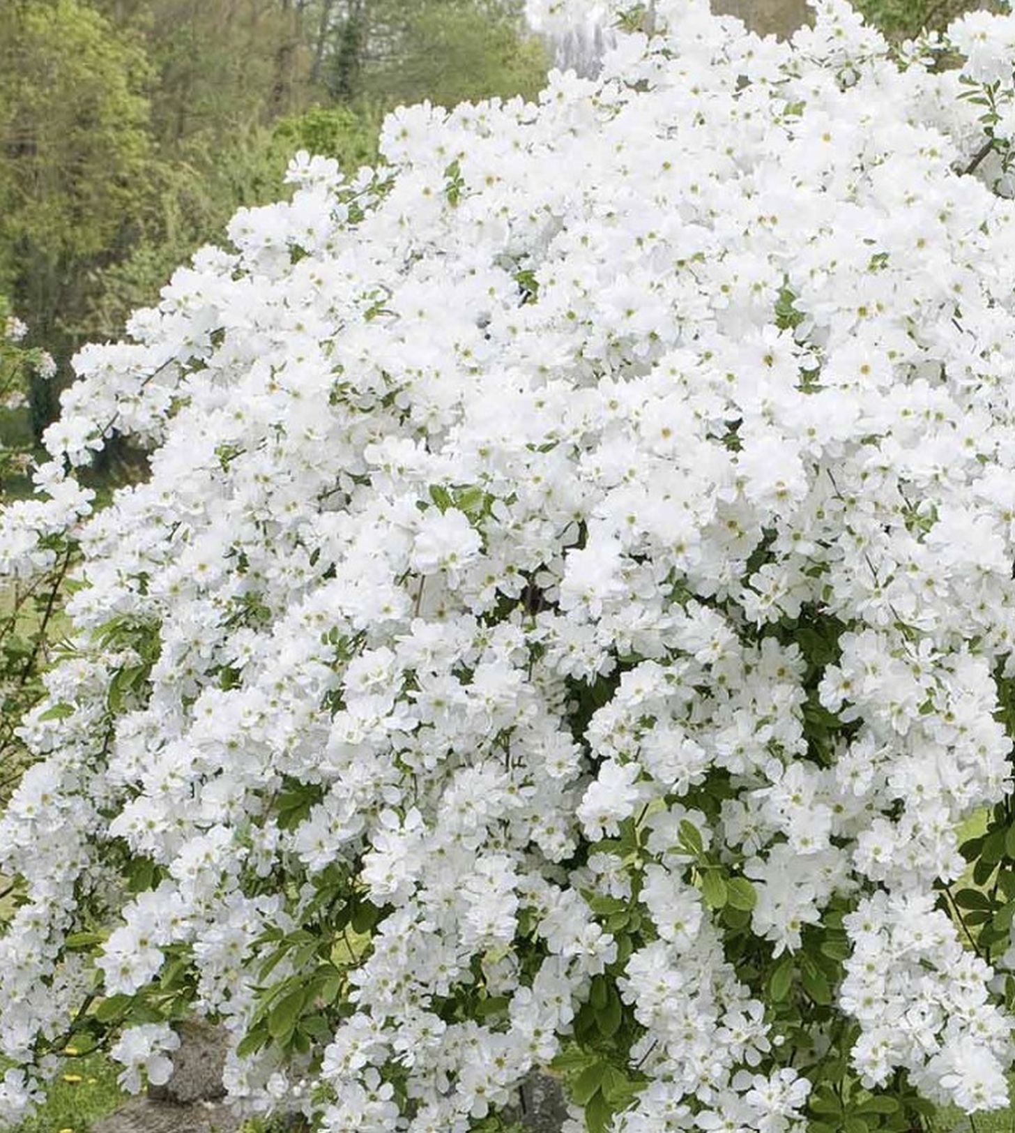 Sűrű, sötétzöld lombú, ívesen lehajló ágú cserje, májustól bőségesen, csoportokban nyitja nagyméretű, hófehér, sárgás közepű virágait. Zóna:4a