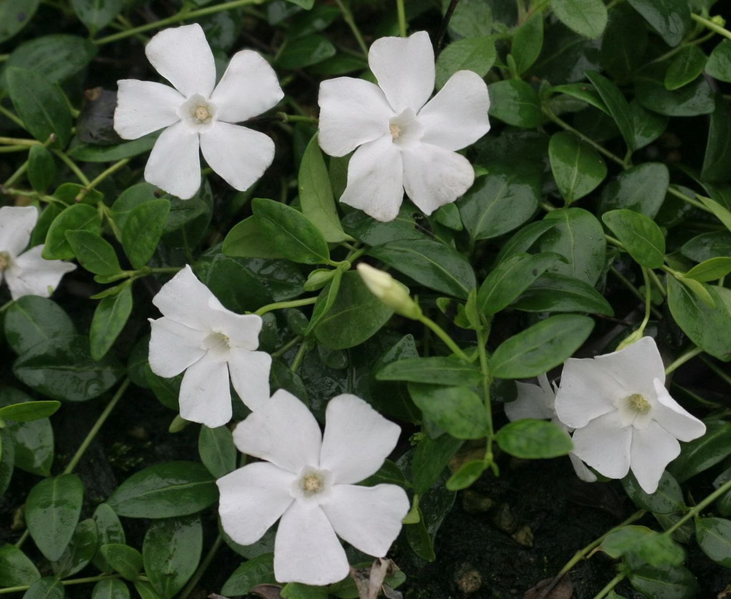 It is a creeping dwarf evergreen shrub forming a low carpet on the ground. The flashy, large white flowers appear in the largest number from March to June, but later on it still continues with a few! Its lying shoots get rooted, so fixes the soil very well, it is especially beneficial when the soil is needed to be fixed on slopes!