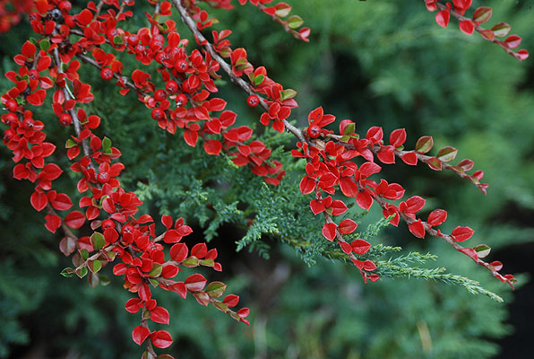 A talaj felszínén szélesen szétterülő alacsony bokor, mely támfalak növényesítéséhez, rézsűk megkötéséhez, de szoliterként is alkalmazható. Apró, kerek, zöld leveleivel, hófehér virágocskáival és tűzpiros bogyóinak tömegével igen mutatós növény. Lombja ősszel narancsvörösre színeződik. Talajokban és fekvésben nem válogat, a legkülönfélébb termőhelyeken is szépen fejlődik, hamar látványos lesz. Kínai eredetű, teljesen télálló. 6a USDA-zóna