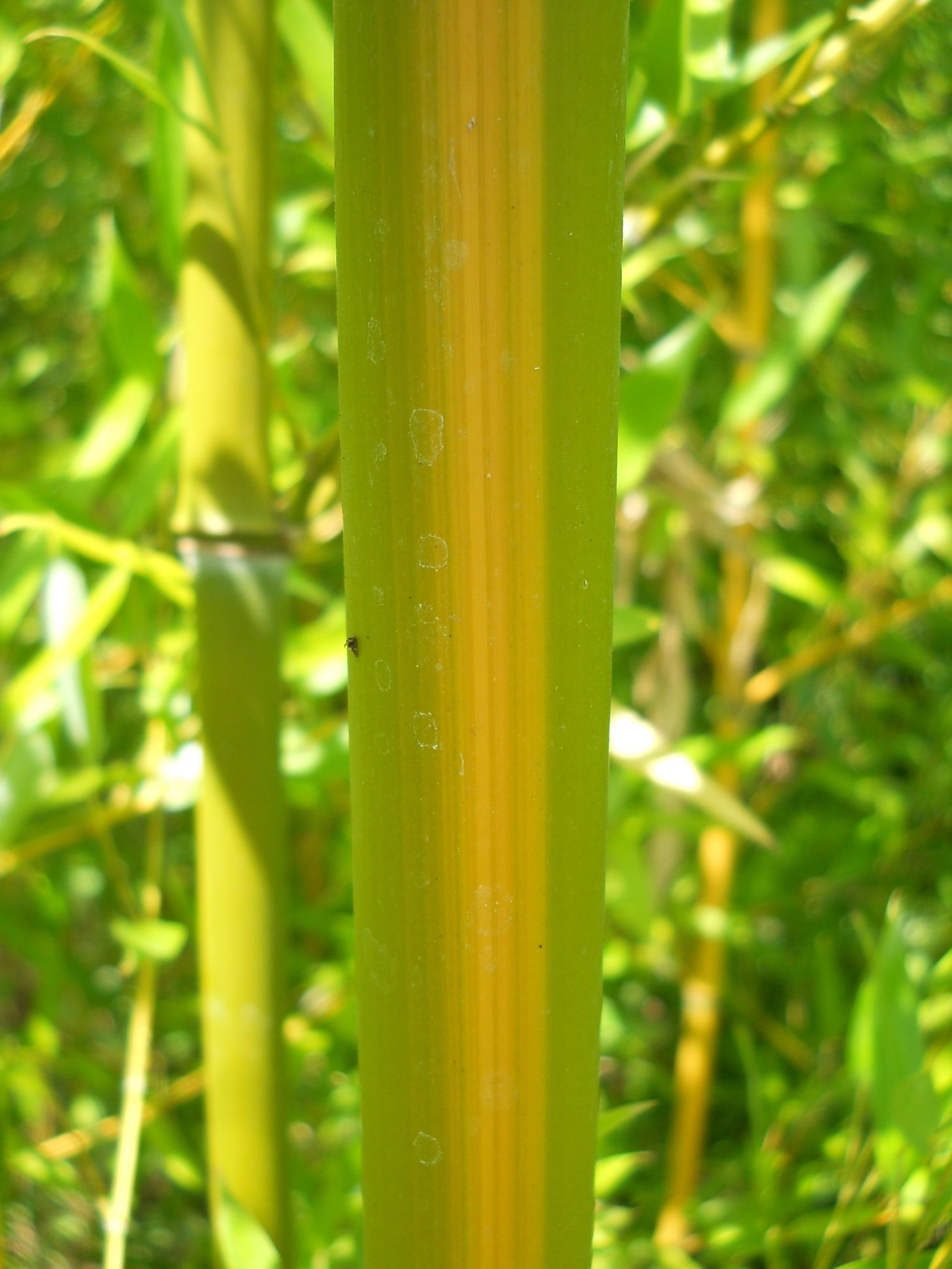 Jó tűrőképességű, szép megjelenésű, nagy termetű bambusz, magassága optimális esetben a 9-10 métert is elérheti. Fagytűrése nagyon jó, talajban nem válogat, a szárazságot jól tűri. 3-4 cm átmérőjű, sötétzöld színű szárain a barázdák aranysárgák. Lombozata szép sötétzöld, egészséges. Fiatal hajtásai ehetőek, kellemes ízűek, az őket borító szárhüvelyek dekoratívak, lilásan csíkozottak, a szárak alsó része néha cikkcakkosan fejlődik. Figyelemre méltó, szép növény, bármelyik kert elsőrangú dísze. Hosszú, egyenes szárai sokrétűen felhasználhatók. Zóna:6a