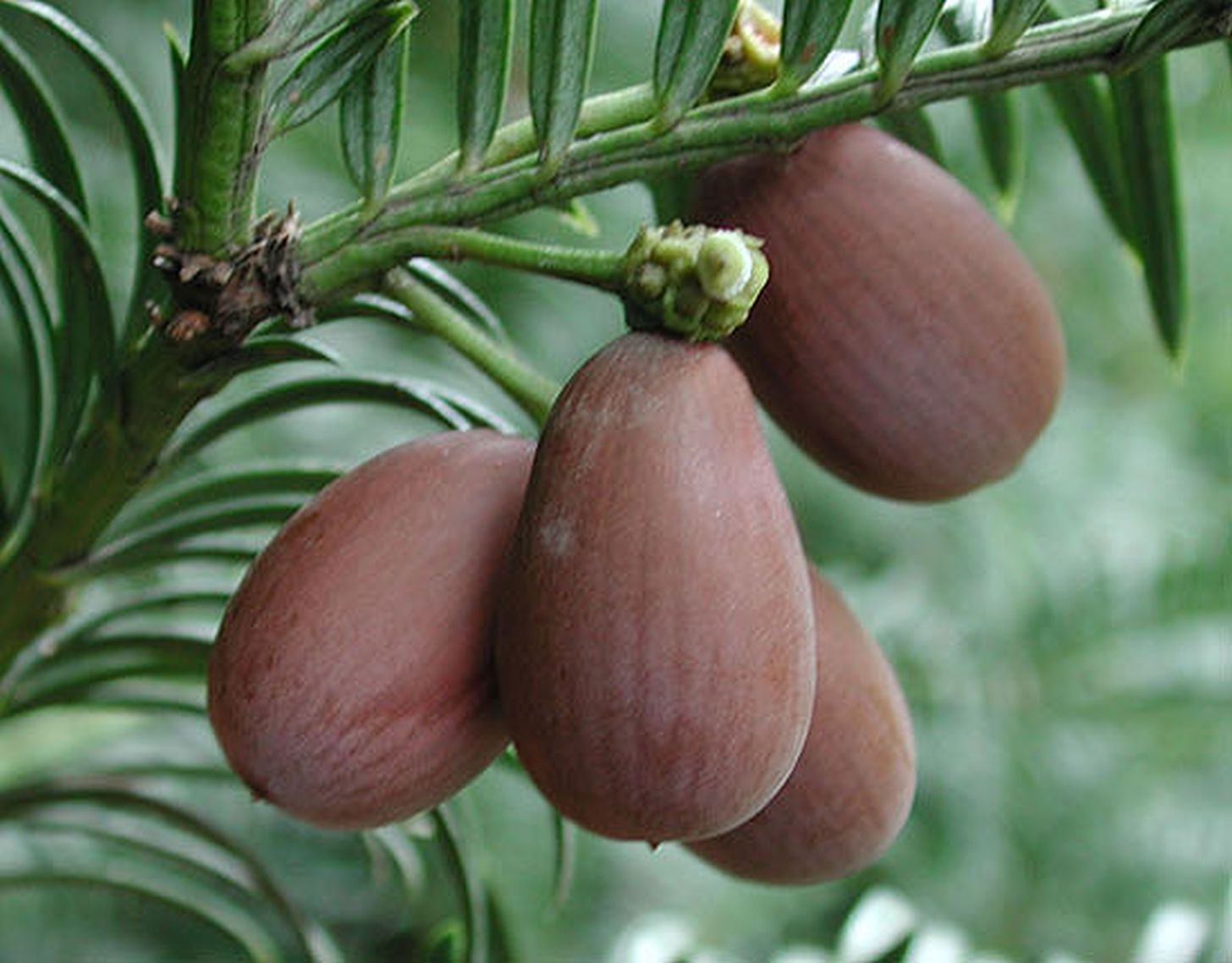 Kisebb fává, vagy termetes bokorrá növő, sötétzöld lombú fenyő, levelei hosszúak (3-6cm), szélesek, tiszafára emlékeztetőek. Termése (pontosabban magköpenye) ehető.
