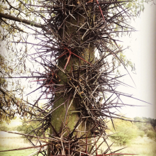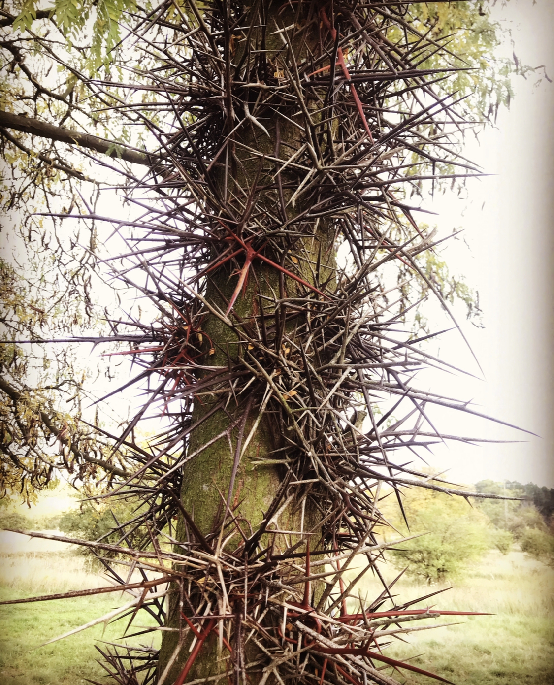 Észak-Amerikából, azon belül is a Mississippi-medencéből és tág környékéről származik, a Nagy-tavaktól egészen a Mexikói-öbölig honos. Jórészt ártereken, folyóvölgyekben fordul elő, ennek ellenére jó szárazságtűrő. Edzettsége, és jó tűrőképessége miatt még bányameddők rekultivációjánál is ültetik! Vastagabb ágain és még a törzsén is erőteljes töviscsomók vannak, melyek még el is ágazhatnak, és méretük elérheti a 20 cm-t! Ezen tulajdonsága miatt kiváló sövénynövény, különösképp ha rendszeresen visszavágjuk és ezáltal a talaj közelében sűrűn elágazódik! Tövis nélküli változatai is vannak, ezek barátságosabbak dísznövényként alkalmazva.
