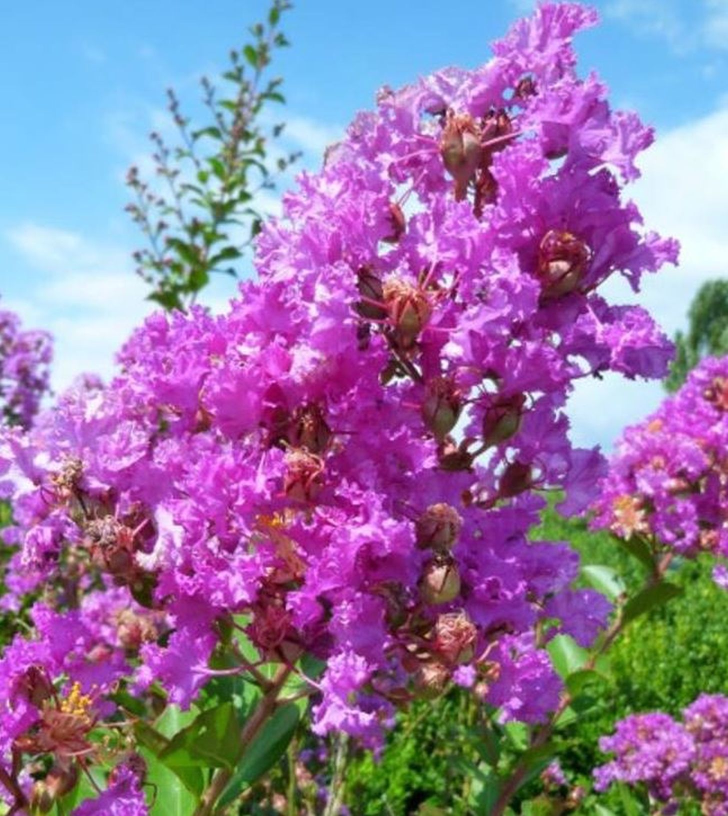 It is a 2-3-metre tall, deciduous ornamental shrub which has flowers with fringed petals are one by one 2-2.5 cm wide, but appear in panicles and bloom continuously in abundance from mid-summer. It is a real highlight. From July to September, it forms a huge dim-purple bouquet in the garden. It reaches its most exquisite floral pomp at a windless, sunny location of humid air.