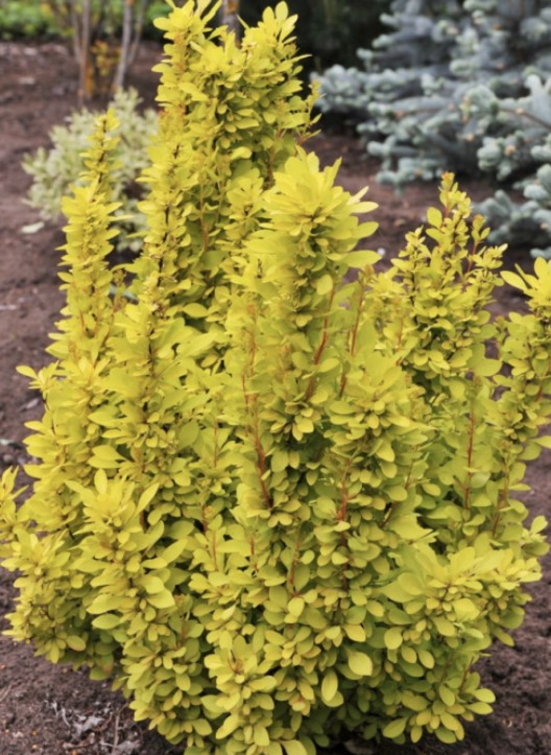 1 méter magasra növekvő, felfelé törő habitusú kis bokor, mely ragyogó aranysárga színnel hajt ki és ez a vibrálóan intenzív színhatás hónapokon át megmarad. A nyár vége felé kezd csak kissé visszazöldülni, majd lombhullás előtt az egész lombozat narancsszínűre változik!