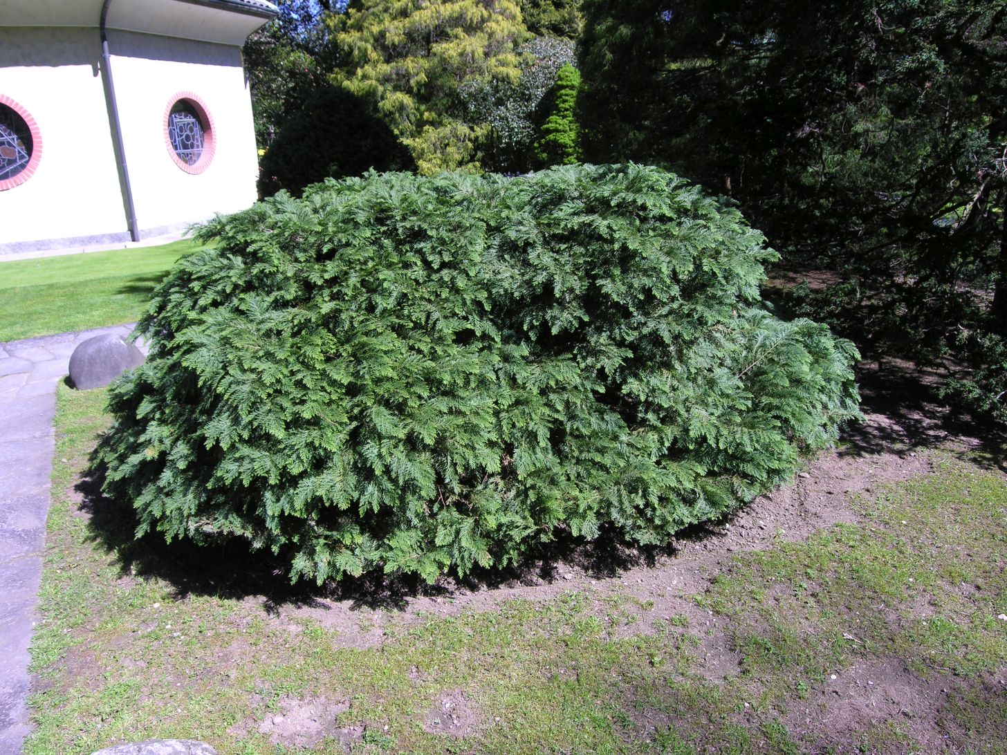 1,5 m széles, 1 m magas, fészekszerűen lapított, gömbölyded, kékeszöld lombú, törpe változat. Zóna:6b