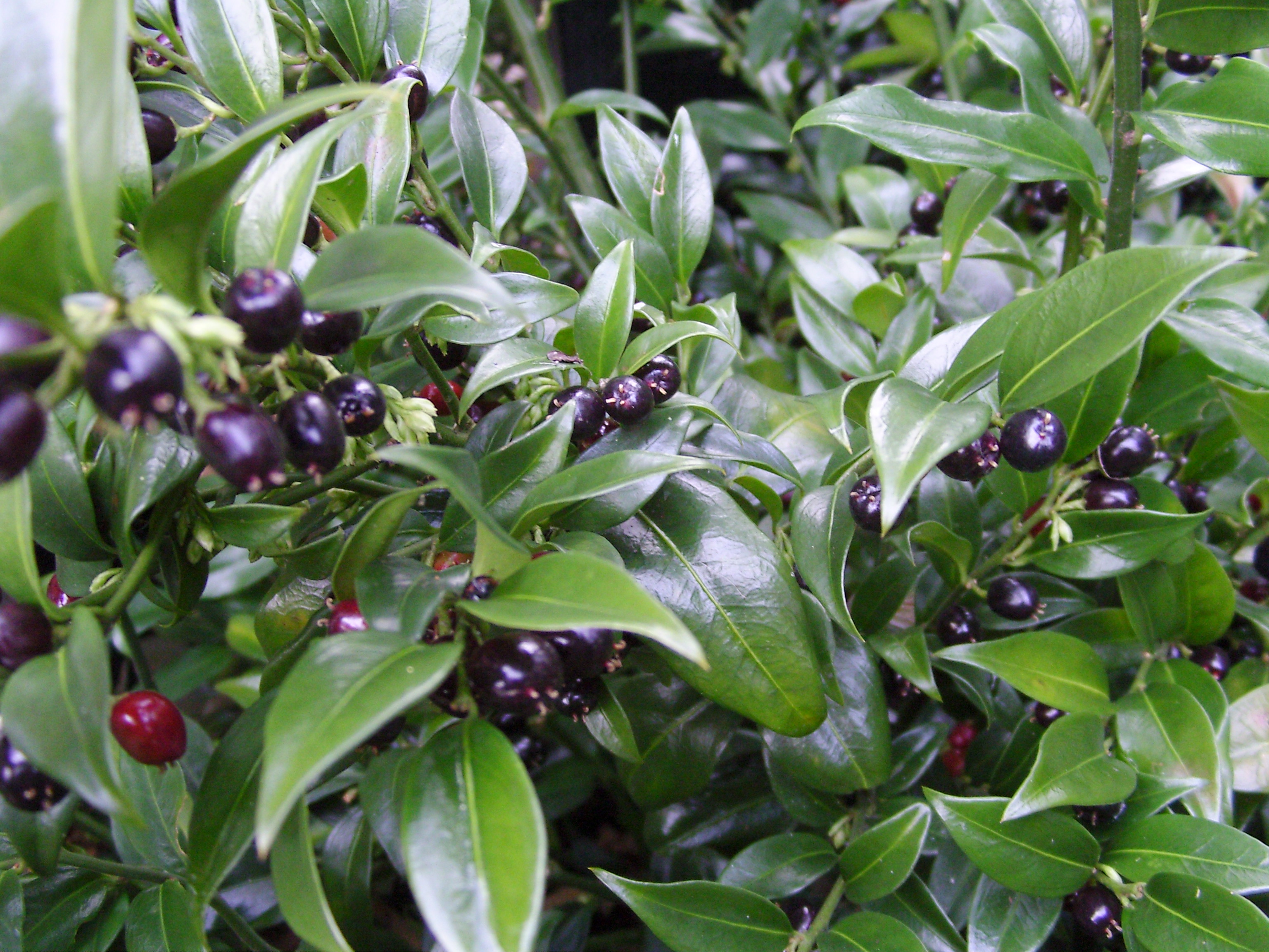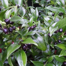 Az egyik legjobb árnyéktűrő örökzöld cserje! 1 méter körüli magasságot érhet el. Kora tavasszal nyíló apró fehér virágainak mézédes illatát messziről érezni! Csillogó örökzöld lombozatát később feketés bogyócskák díszítik. Talajban nem válogató, teljesen télálló, kínai eredetű különlegesség!