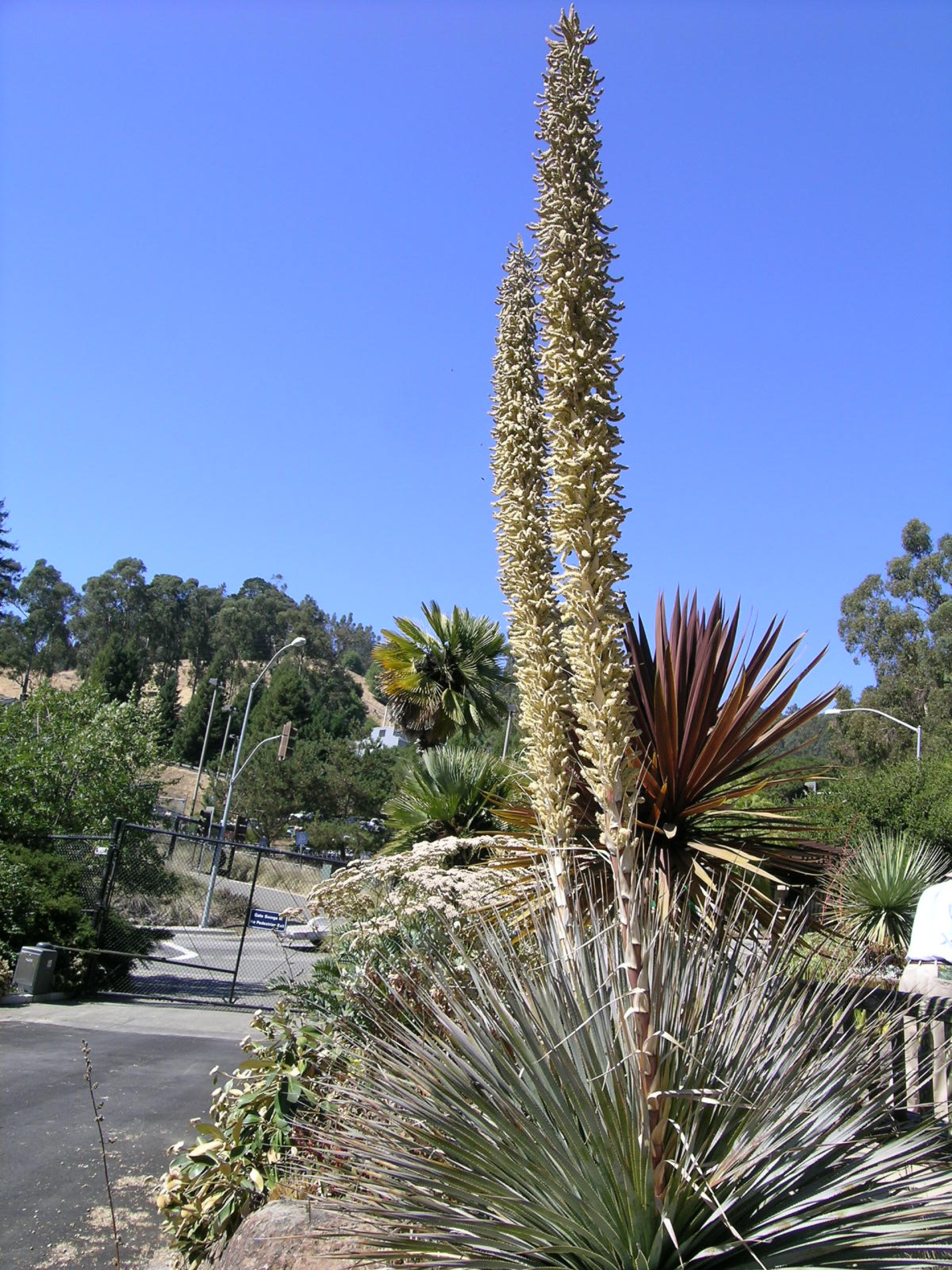 Az USA délnyugati, illetve Mexikó északi államaiban honos, pálmaliliomszerű, kékeszöld levélszínű növény, mely 1,5-2 méter magasra is megnőhet. Idősebb korára komoly törzset is nevel! Júniusban 3 méter magas száron hozza mutatós virágait! Jó fagytűrésű, edzett növény, mely a legzordabb fekvések kivételével az ország területének legnagyobb részén sikerrel nevelhető a szabadban, tűző napos helyen és jó vízelvezetésű talajban!