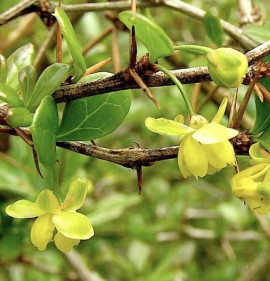 Félörökzöld, 1-1,5 m-es kerek kis bokor, fő dísze csodálatosan szép, ragyogó fényeszöld lombozata. Kiváló sövénynövény! Virágai sárgák.