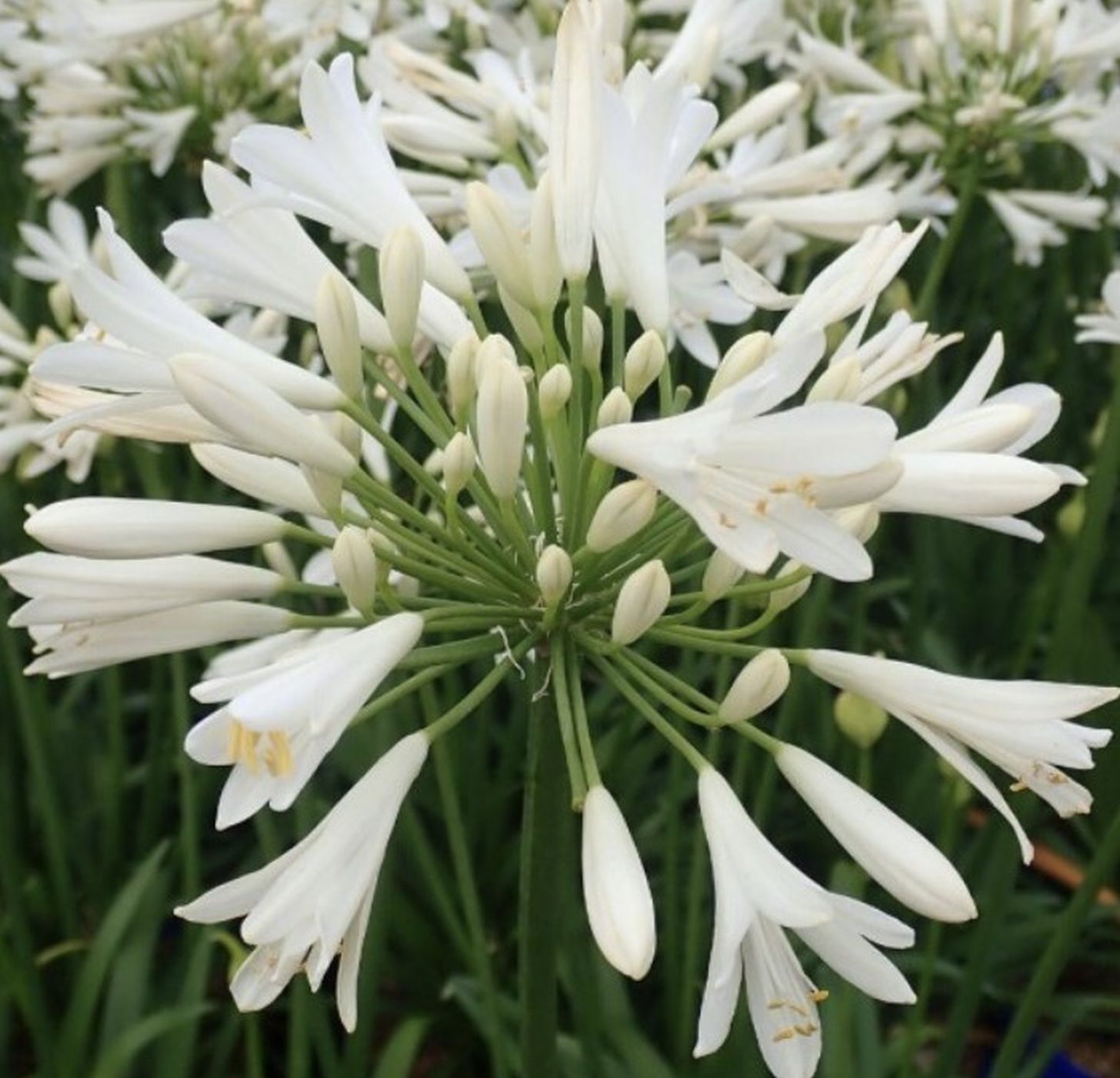 Az Afrikai szerelemvirág hófehér virágú, rendkívül gazdagon nyíló, alacsonyabb termetű, dús telepet alkotó fajtája. Kevesen tudják, de védett helyre a szabadba is kiültethető, ahol esetleg némi takarással szépen áttelel! Nyáron akár két hónapon át is díszíthet gömbölyded virágzataival! Kiváló dézsás növény!