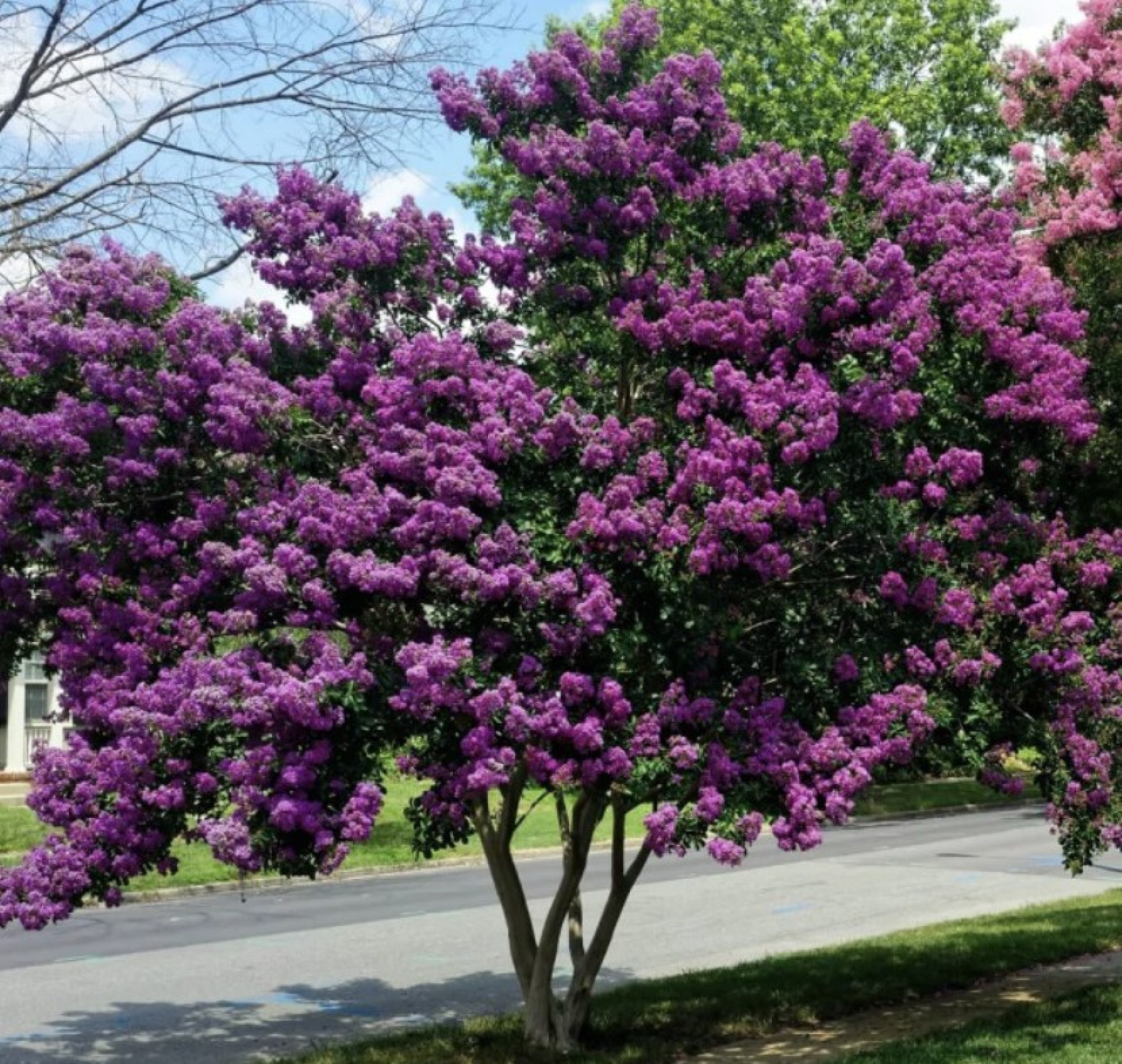 Nagy termetű, 4-5 méter magasra és 3-4 méter szélesre növő, élénk-lila virágú, rendkívül dekoratív selyemmirtusz fajta, mely a kert napos részébe ültethető csodálatos díszfa, de dézsásként is tartható! Nyílási ideje augusztus-szeptember.