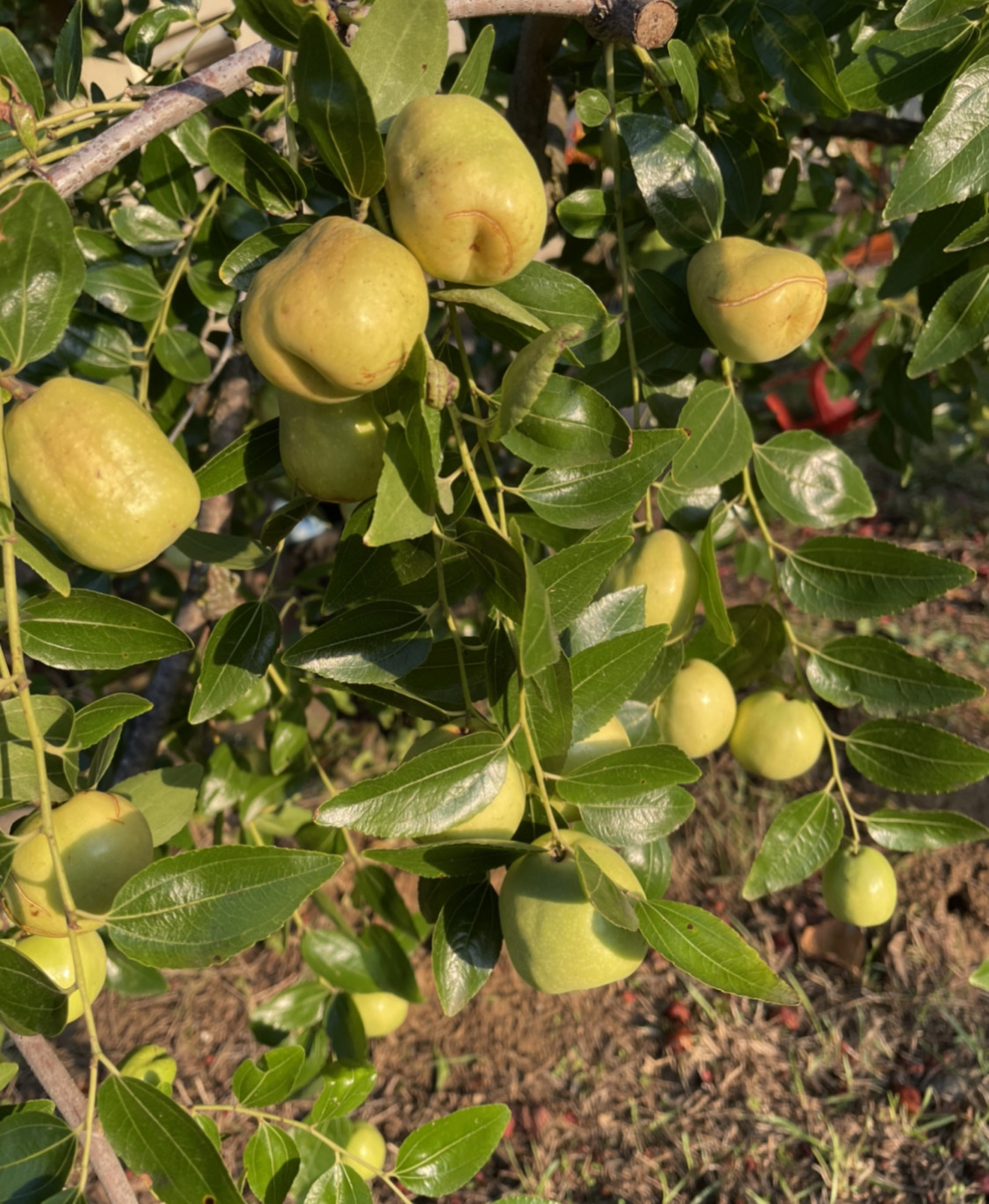 A jujubák, kínai datolyák egyértelműen a klímaváltozás nyertesei!: 2024 áprilisában az éppen kihajtott növényeket leforrázta a fagy, de 2-3 hét elteltével újrahajtottak és a szokásos, bőséges termést hozták a július-augusztusi brutális aszály ellenére is!