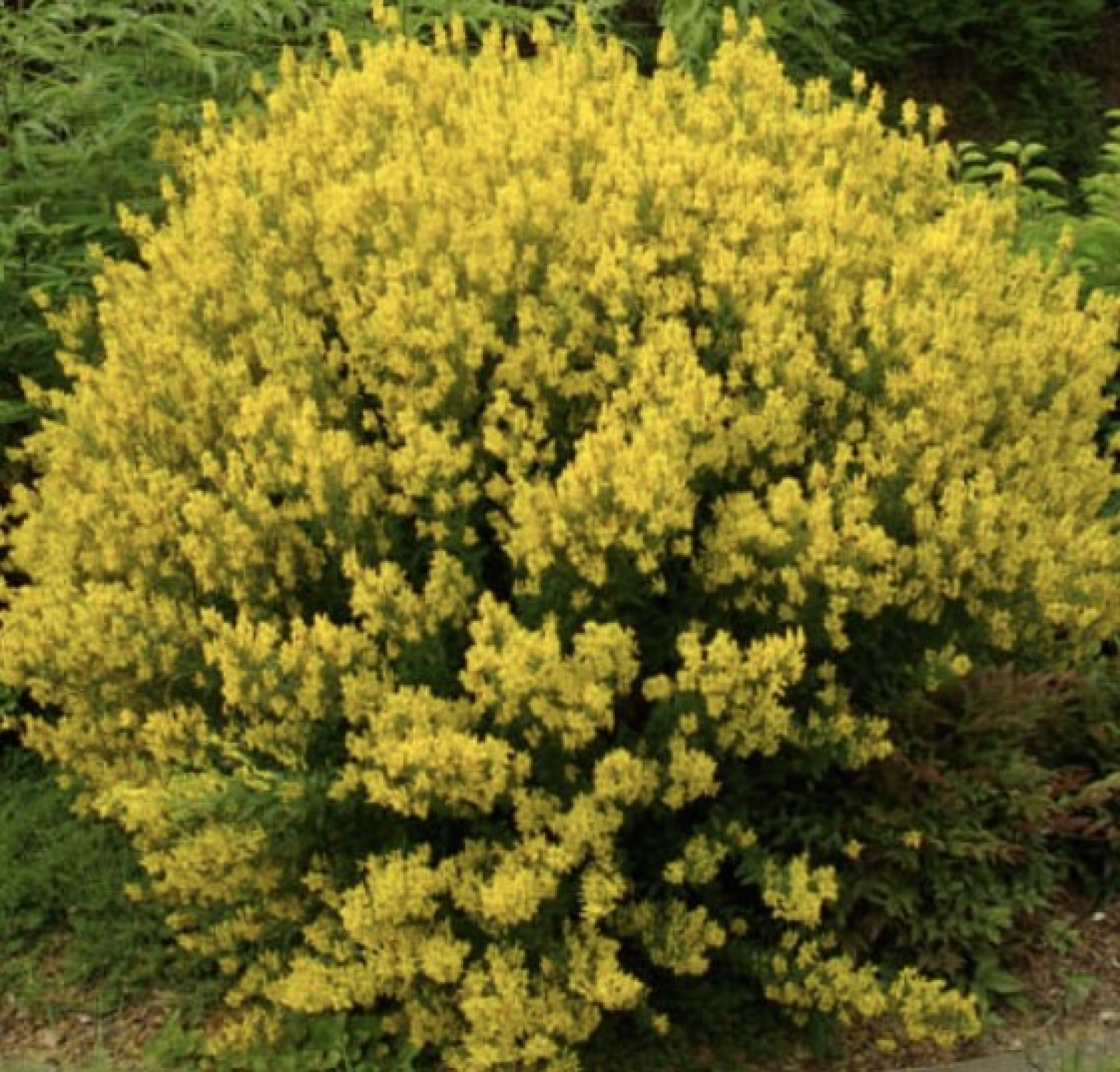 Alacsony termetű cserje, mely május-júniusban tömegesen hozza hosszú, kúpos füzérekben álló aranysárga virágait.