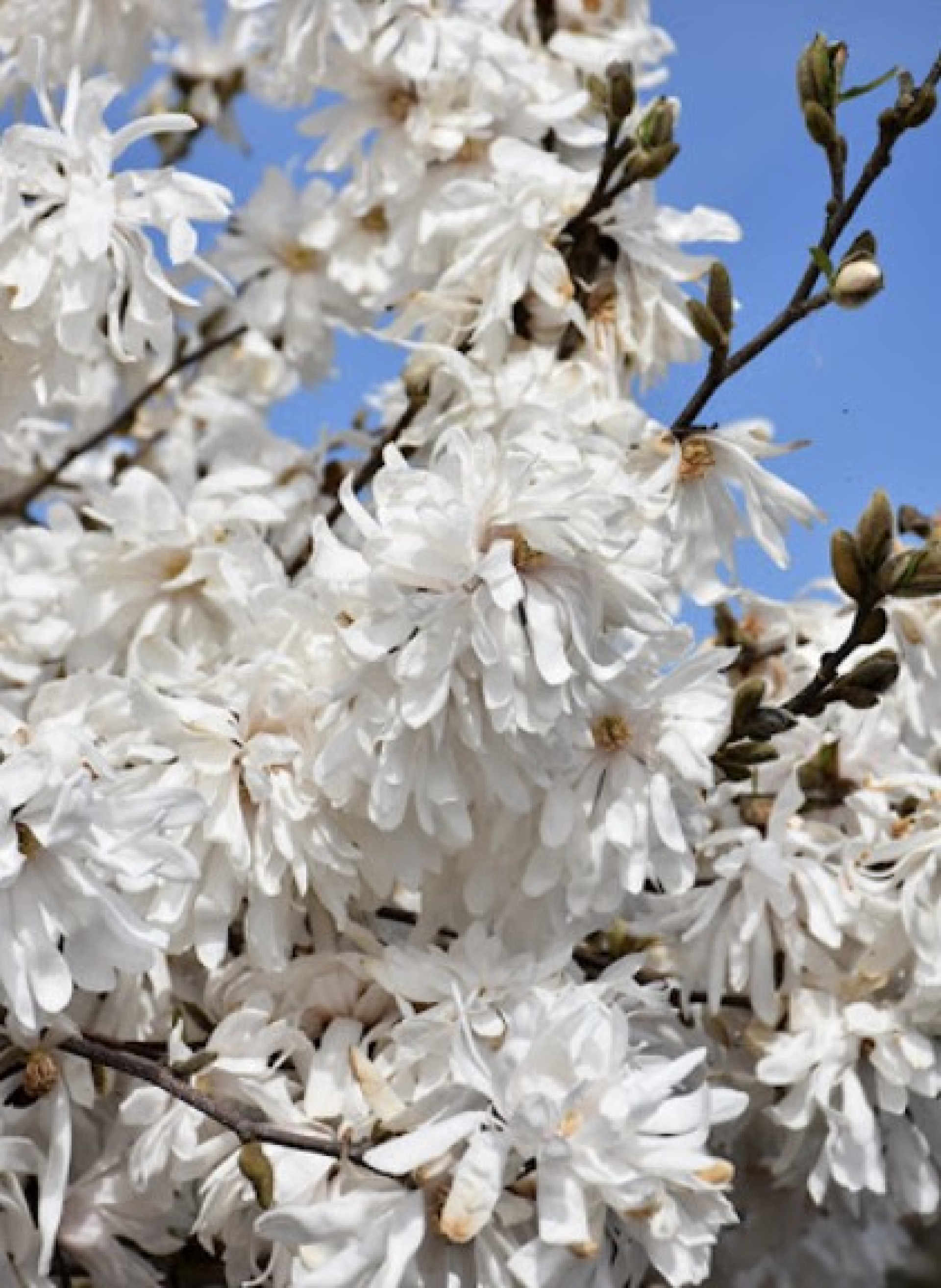 3-4 méter magasra növő nagyobb bokor, melyet március-áprilisban elborítanak hófehér, telt, csillagszerű, nagy méretű virágai!