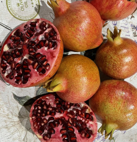 Kiváló minőségű termést adó, orosz nemesítésű változat! 2020 novemberében már mintegy tucatnyi gránátalma fajta termését értékeltük, küllem és beltartalom alapján, ez a fajta is a legjobbak között volt! Vérszerűen sűrű, gyönyörű, sötét leve tartalmas, nagyon finom! 1 kg gyümölcs mintegy 4 dl levet ad, mely a gránátalma esetében igen jó aránynak számít!