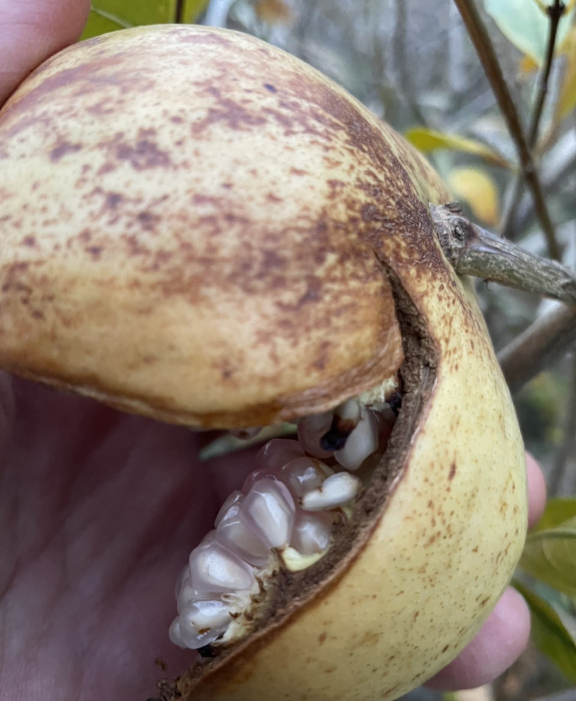 Világos, zöldessárga héja és hófehér belseje miatt igen érdekes fajta. A felhasadó gyümölcsök ikrái szinte átlátszóak, ízük inkább savanykás, de különleges, lime-hoz hasonló aromával.