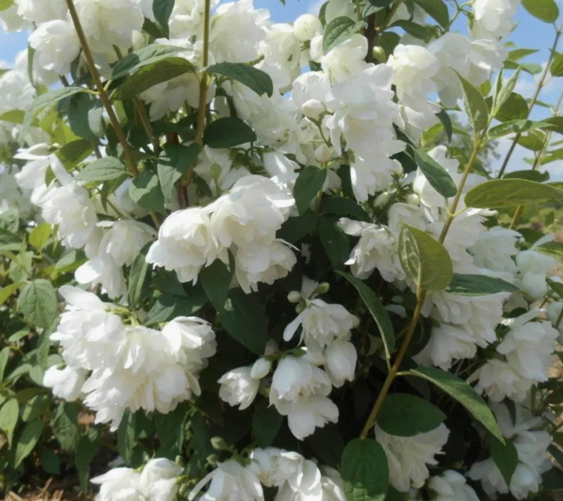 Az illatos jezsámen zömök termetű változata, mely legfeljebb 1,5 méter magasra/szélesre növekszik. Kellemes illatú, telt hófehér virágai özönszerű tömegben nyílnak május végétől június végéig! Szoliterként, sövényként, de akár edényes dísznövényként is szemet gyönyörködtető!