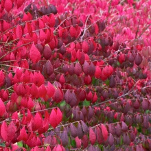 It is a low, deciduous shrub with dark green foliage, which grows as tall as approx. 1m and its branches are decorated with special wide thin bark laths. The autumn foliage colour is stunningly colourful, almost glowing carmine! It is worth planting primarily as a solitary plant.