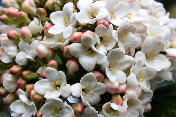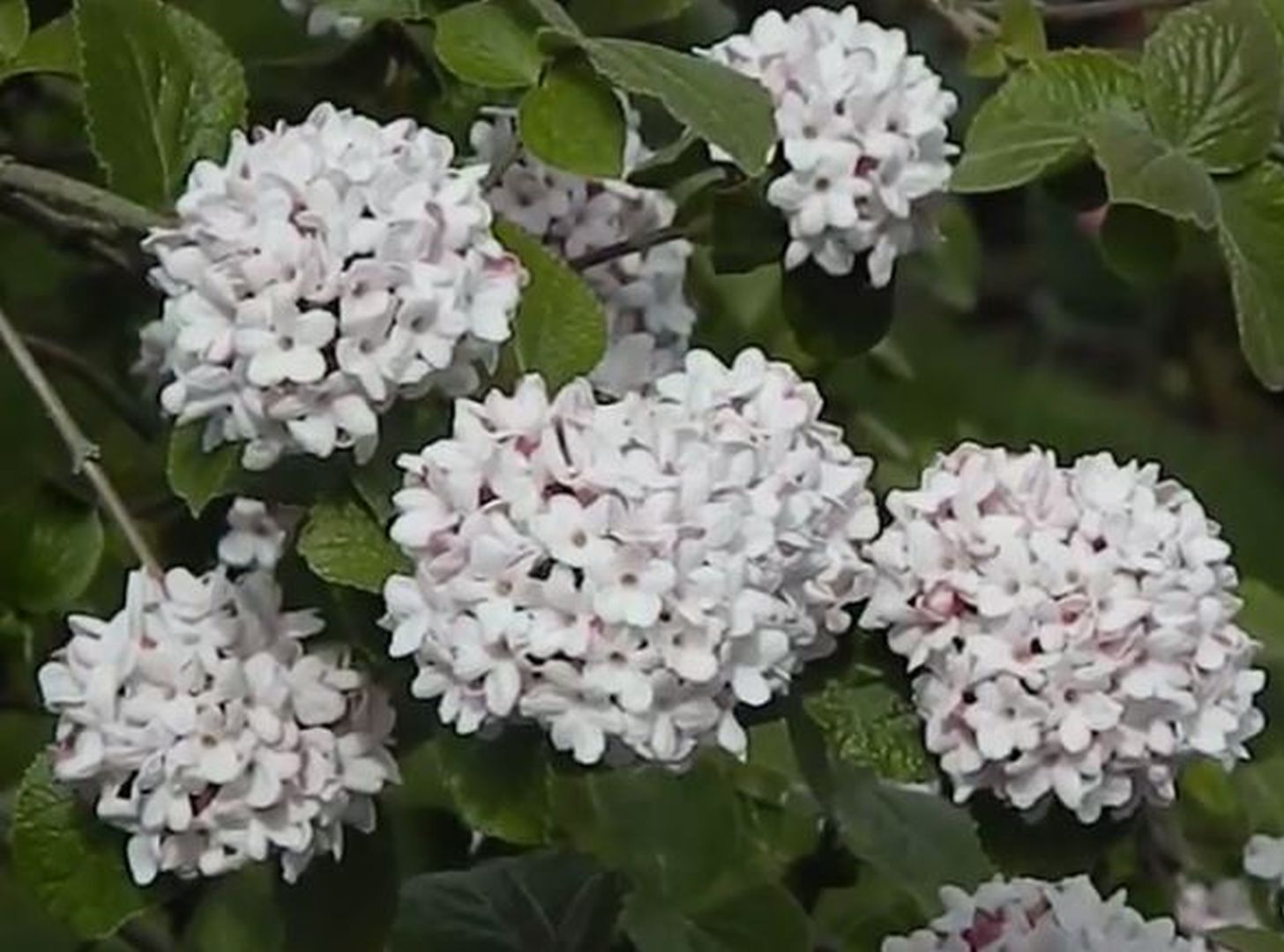Az egyik legfinomabb illatú bangita, mely május elejétől hosszan nyílik. Hógolyó-szerű virágzatai porcelánszerűek, fehérek, halvány rózsaszín bemosással. Nagy levelekből álló sötétzöld lombozata ősszel vörösre színeződik! 2-3 méter magasra és hasonló szélesre növekszik, kis alakítással mutatós törzses fácskává is nevelhető!